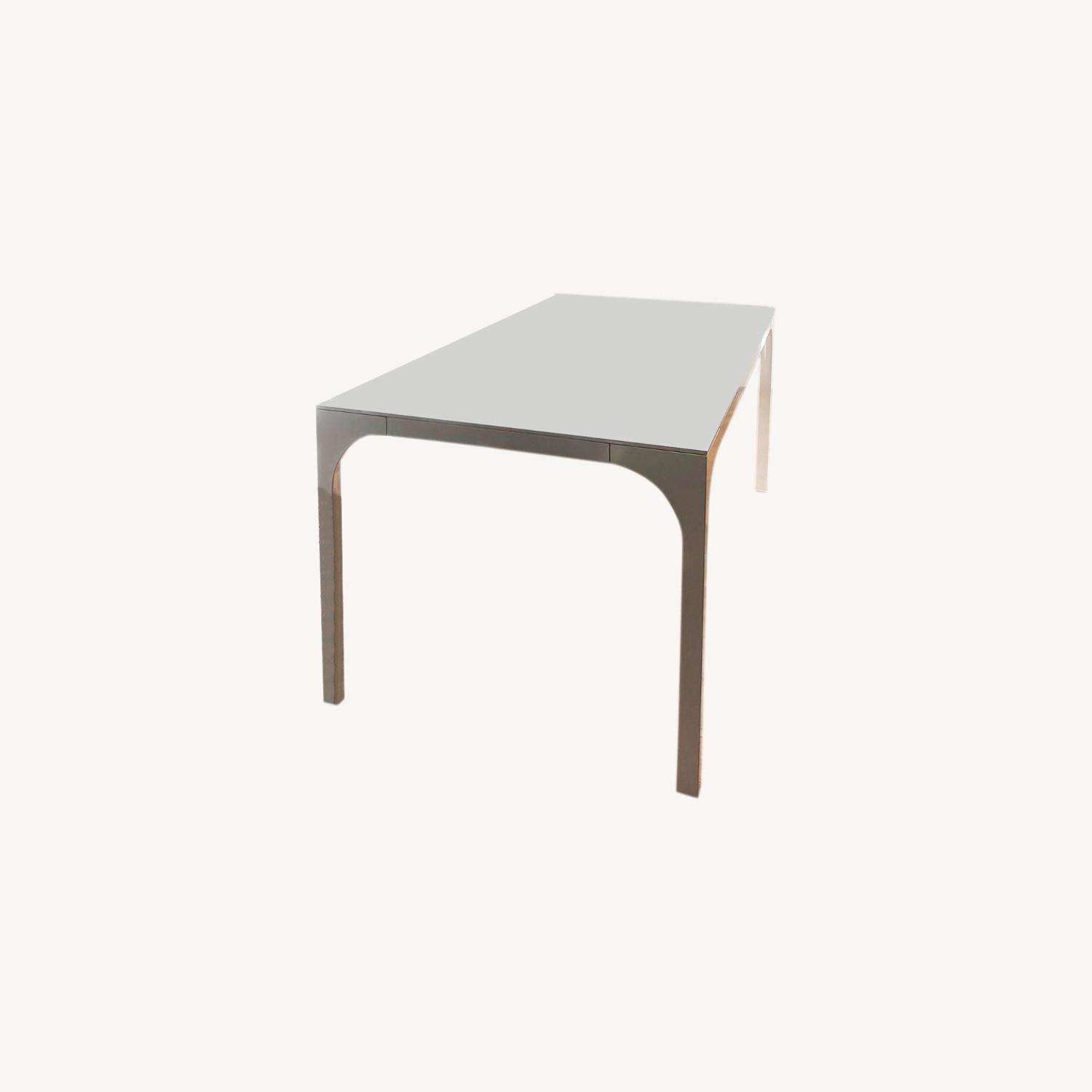 Seller's Notes:CB2 Aqua Virgo Dining Table in good condition! Like new aside from one small stain to surface (pictured in detailed photo). 72"Wx36"Dx29.5"H Retails for $899 and currently back ordered through mid April. https://www.cb2.com/aqua-virgo-dining-table/f8571 Disassembled and ready for pickup.