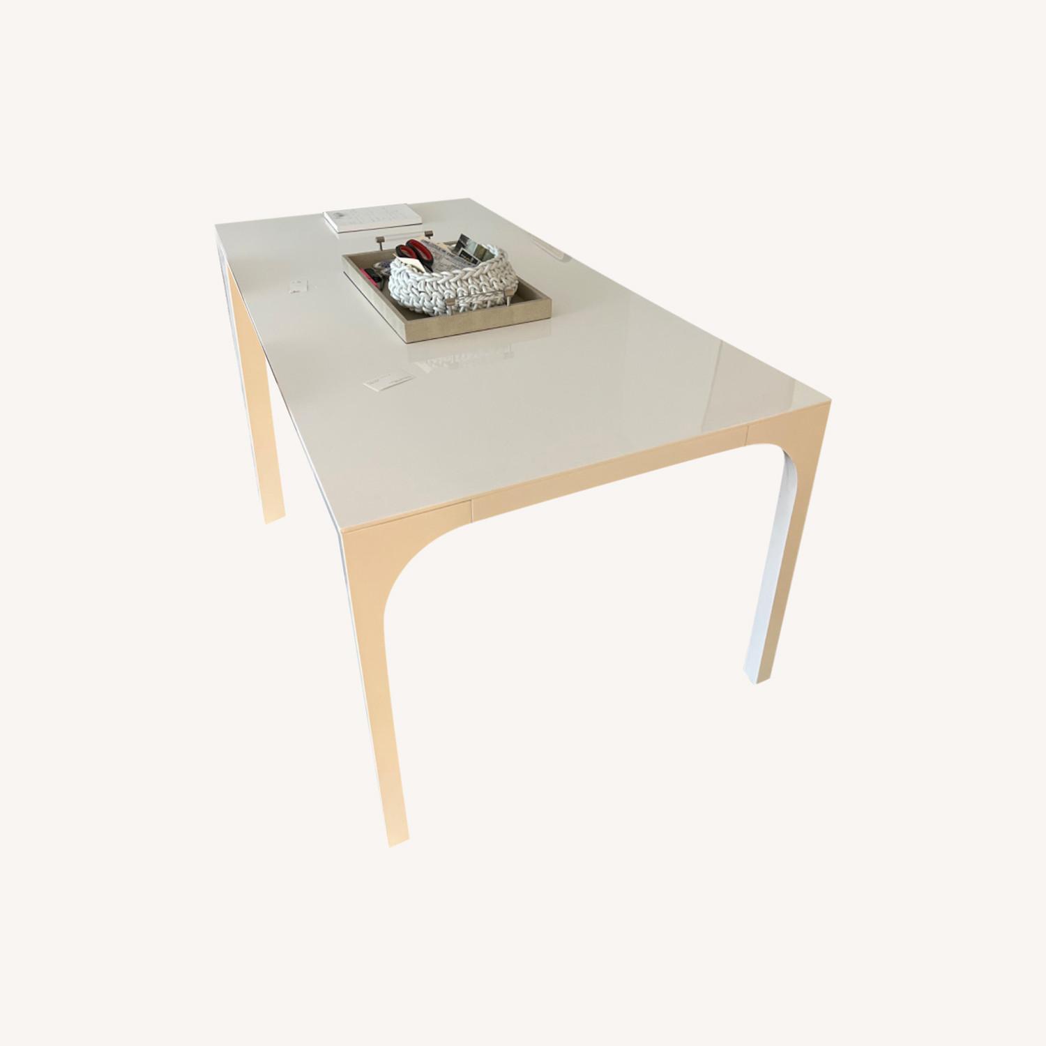 Seller's Notes:Ancient Roman aqueducts and high-speed trains are the ticket to this sleek lacquered table from the minds at Italy's Euga Design Studio. Table flows continuous in hi-gloss white, from smooth engineered wood top to solid rubberwood legs. Fluid curve of each leg mirrors the sweeping arched structure of the aqueducts—an architectural foundation for a stretch of Eurail tracks. Comfortably dines six, but will accommodate eight. Learn about Euga Design Studio on our blog. Aqua Virgo Dining Table 72"Wx36"Dx29.5"H Designed by Euga Design Studio Engineered wood top Solid rubberwood legs Solid poplar apron Hi-gloss white lacquer finish Seats up to eight; six comfortably Clean with damp cloth Made in Vietnam
