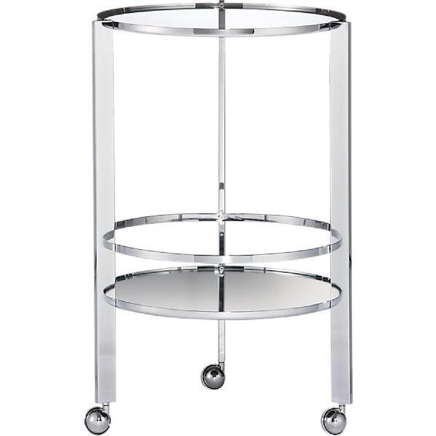 Seller's Notes:Gleaming chrome double-decker interchanges mirror/glass discs to wheel in drinks, nibbles, bartender tools. Learn about MASHstudios on our blog. ernest chrome bar cart is a CB2 exclusive.