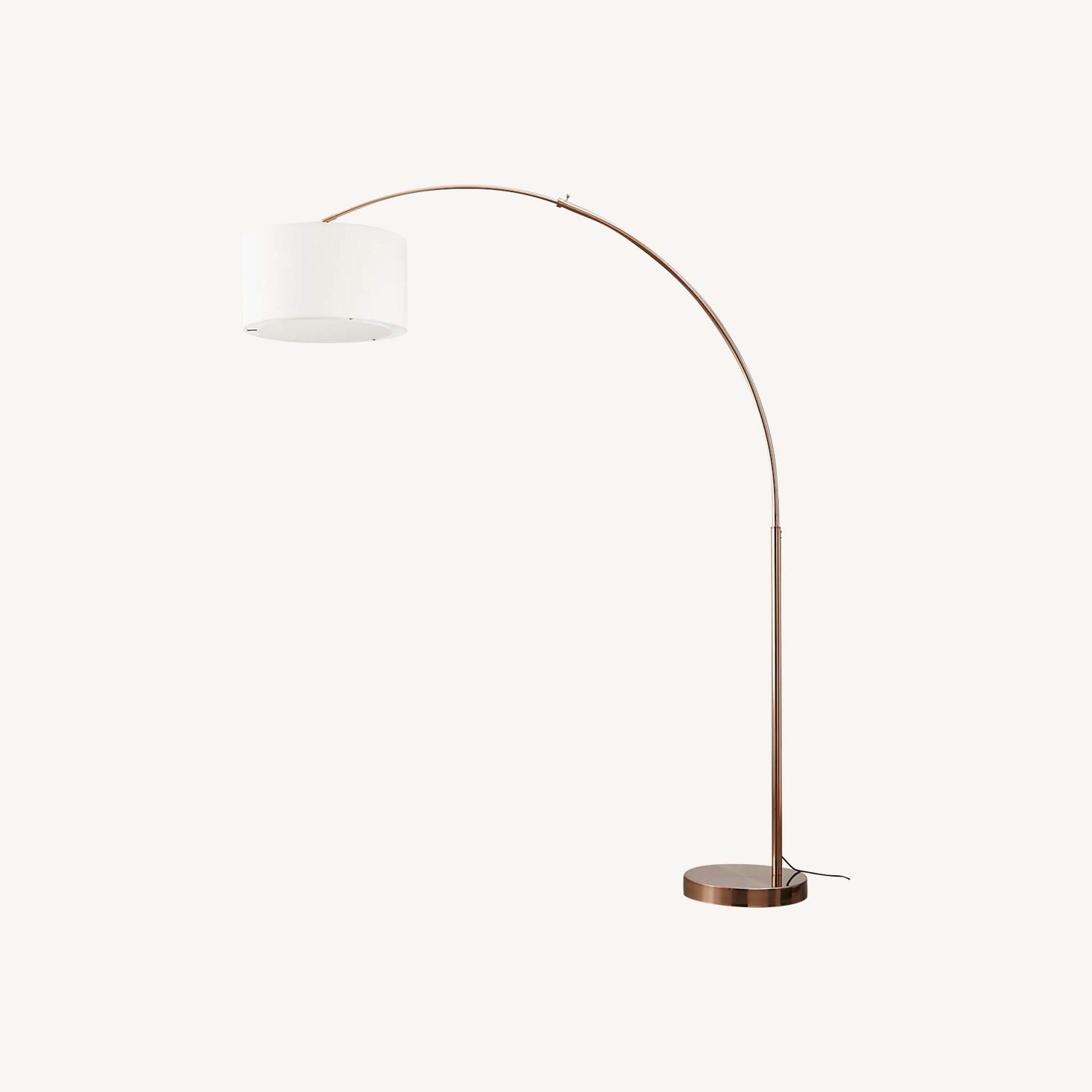 Seller's Notes:Make a statement with the CB2 Big Dipper Arc Floor Lamp, featuring a sleek brass finish and a dramatic arched design that adds both style and function to any space. This eye-catching lamp is perfect for brightening up a reading nook, living room, or workspace.