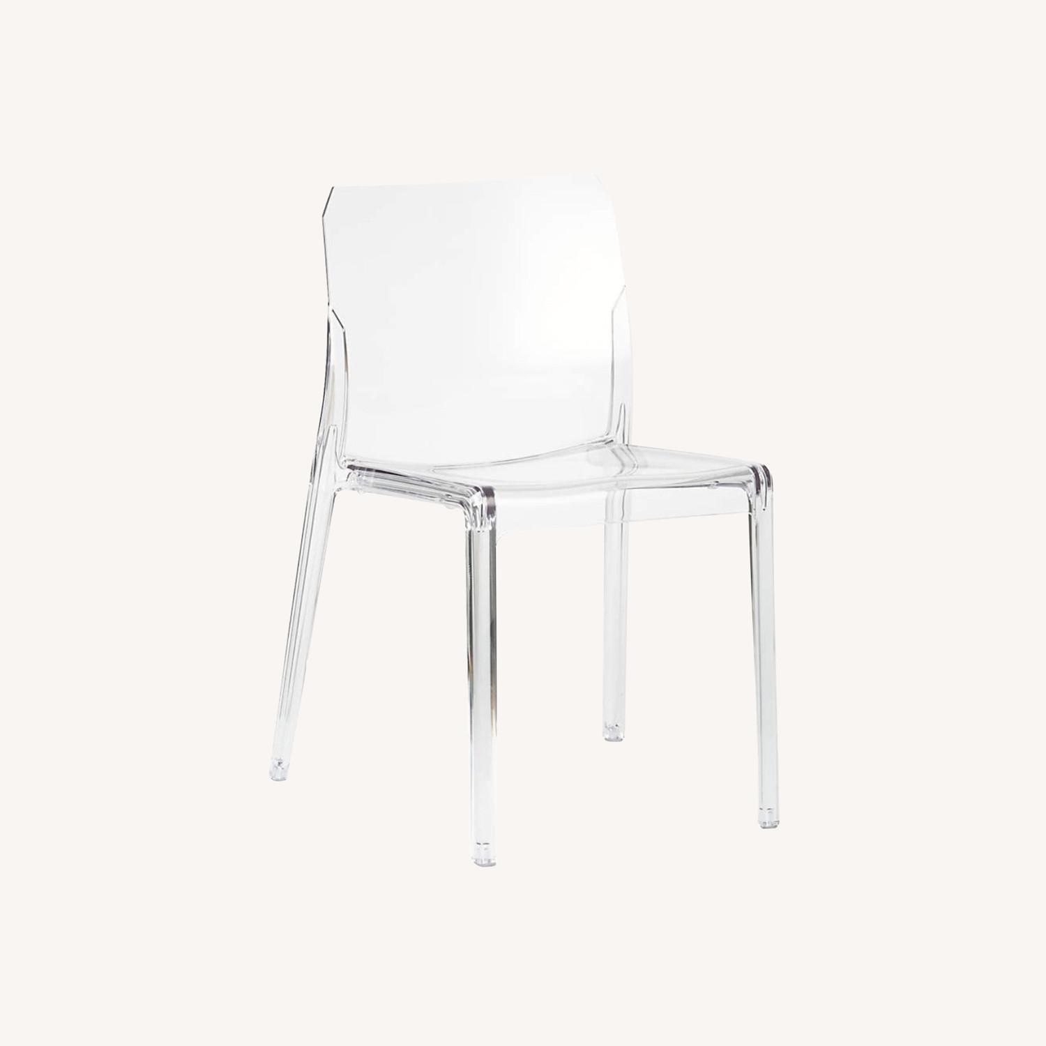 Seller's Notes:Beautiful acrylic chair in very good condition. Minor scratches can likely be buffed out with acrylic polish. From CB2: Italian-made seat bares it all in barely-there clear polycarbonate. Thick-cut and modern, dining chair clearly works with any table. Even better, chairs stack up to disappear in an instant. CB2 exclusive.