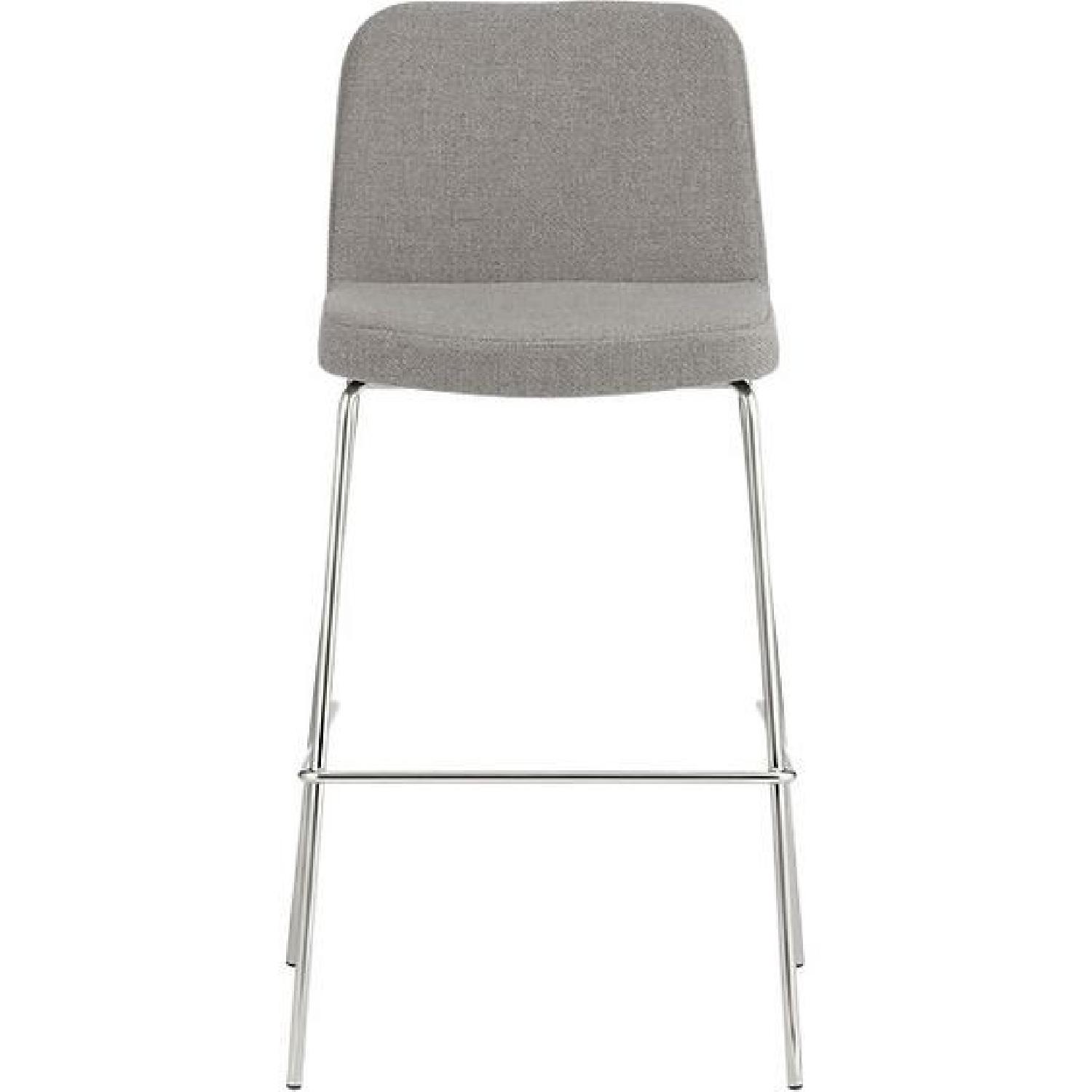 Seller's Notes:Charlie Bar Stools, Set of 4 from CB2 in gray twill. Originally purchased for $179.00 each. Set of 4 totals $716 retail before shipping costs. Like new, mid-century modern light grey CB2 bar height stools! Fabric is in great condition and the backs of the stools provide great comfort compared to most stools of the same height. Stools are a couple years old and weren’t heavily used while we had them. note - color on current product page on CB2 is a different grey (slightly more heathered)