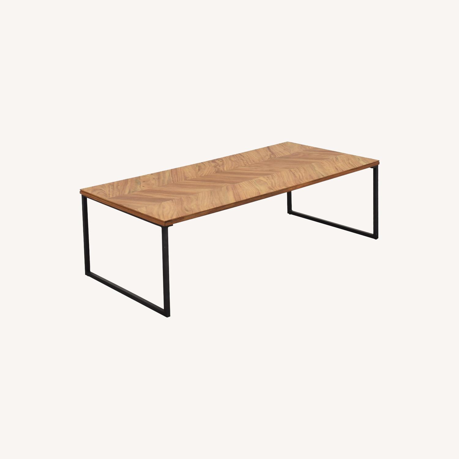 Seller's Notes:CB2 Chevron Coffee table. Natural wood and iron. Finished with clear matte lacquer to reveal natural beauty of the wood. Limited edition. No longer produced. Excellent condition. Genuine CB2.