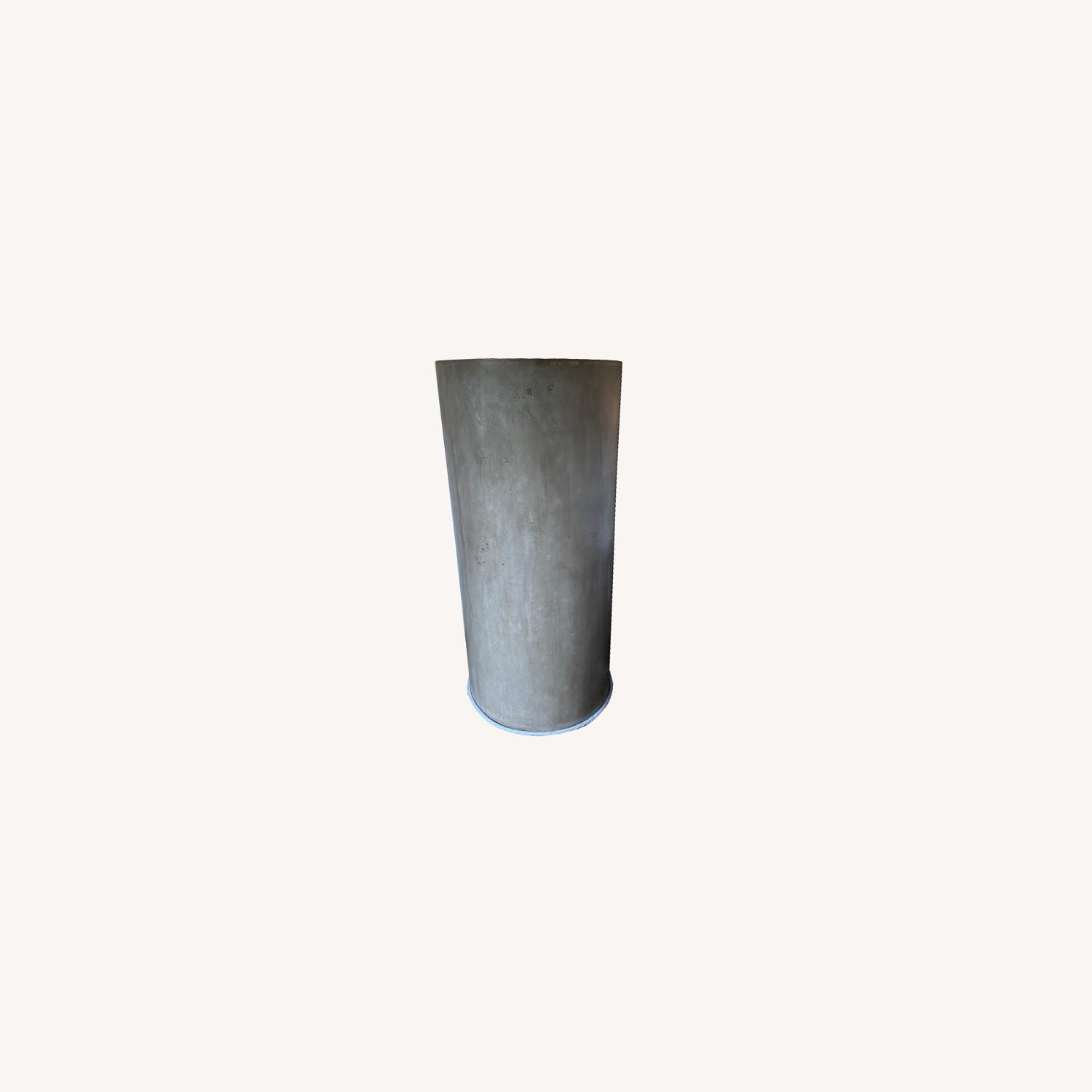 Seller's Notes:A set of two handcrafted of cement, stone and natural fibers industrial chic pedestals. They give architectural rise to art, a lamp or botanicals. Also makes a great side table. Looks very stylish and cosy. Beautiful color, art gallery worthy piece. Selling as a set of two. The cement has a pleasant-to-touch surface and the color is not solid but has natural variations of gray.
