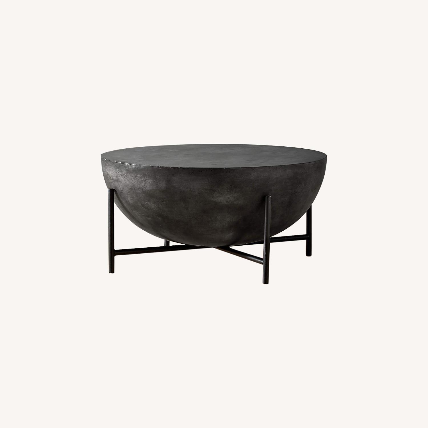 Seller's Notes:Like new CB2 Coffee Table Black Cement, stone powder Matte black steel base Has some cracks that are part of the look https://www.cb2.com/darbuka-coffee-table/f14179 Height: 17” Diameter: 34” Pickup from SoMa only