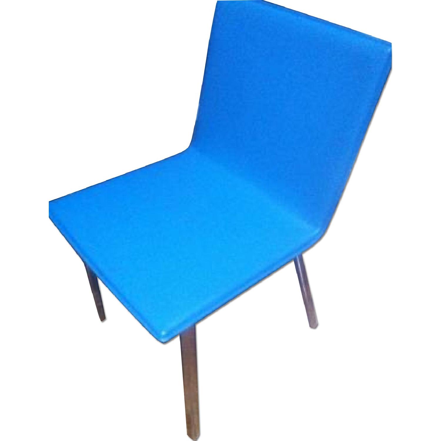 Seller's Notes:Beautiful Leather Teal Blue Dining chair hardly used as new condition set of four. This is a great price for these Modern Contemporary chairs.