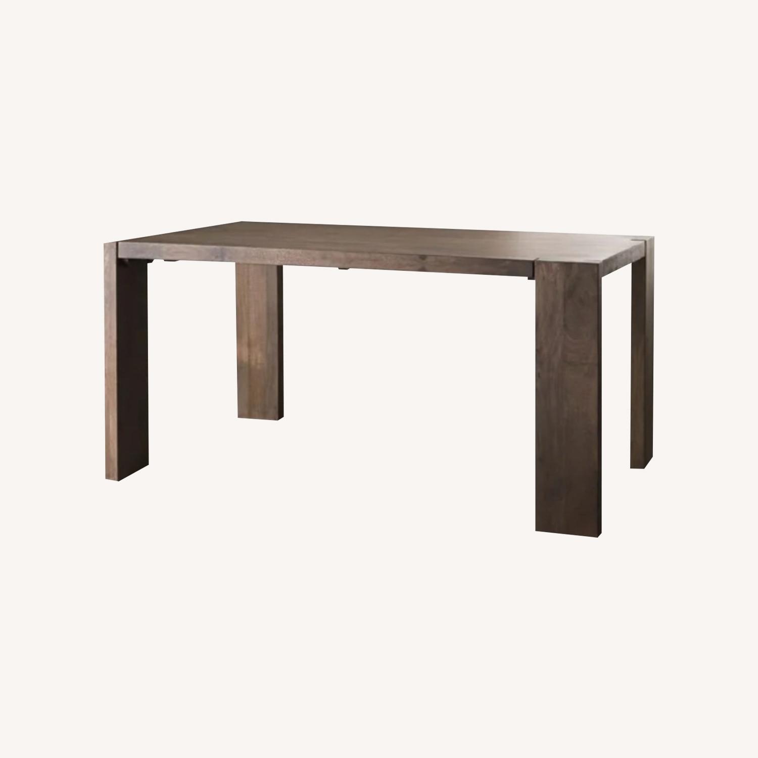 Seller's Notes:"Plantation grown solid mango wood planks" This is a great sturdy table. I used it as my desk & for dining. Gorgeous wood finish something between sheen & matte. I am also selling the bench that comes with it in separate listing. It's Cb2 Best Seller Dining Table 'Blox' 35x63 " Width: 63" Depth: 35" Height: 29.5"