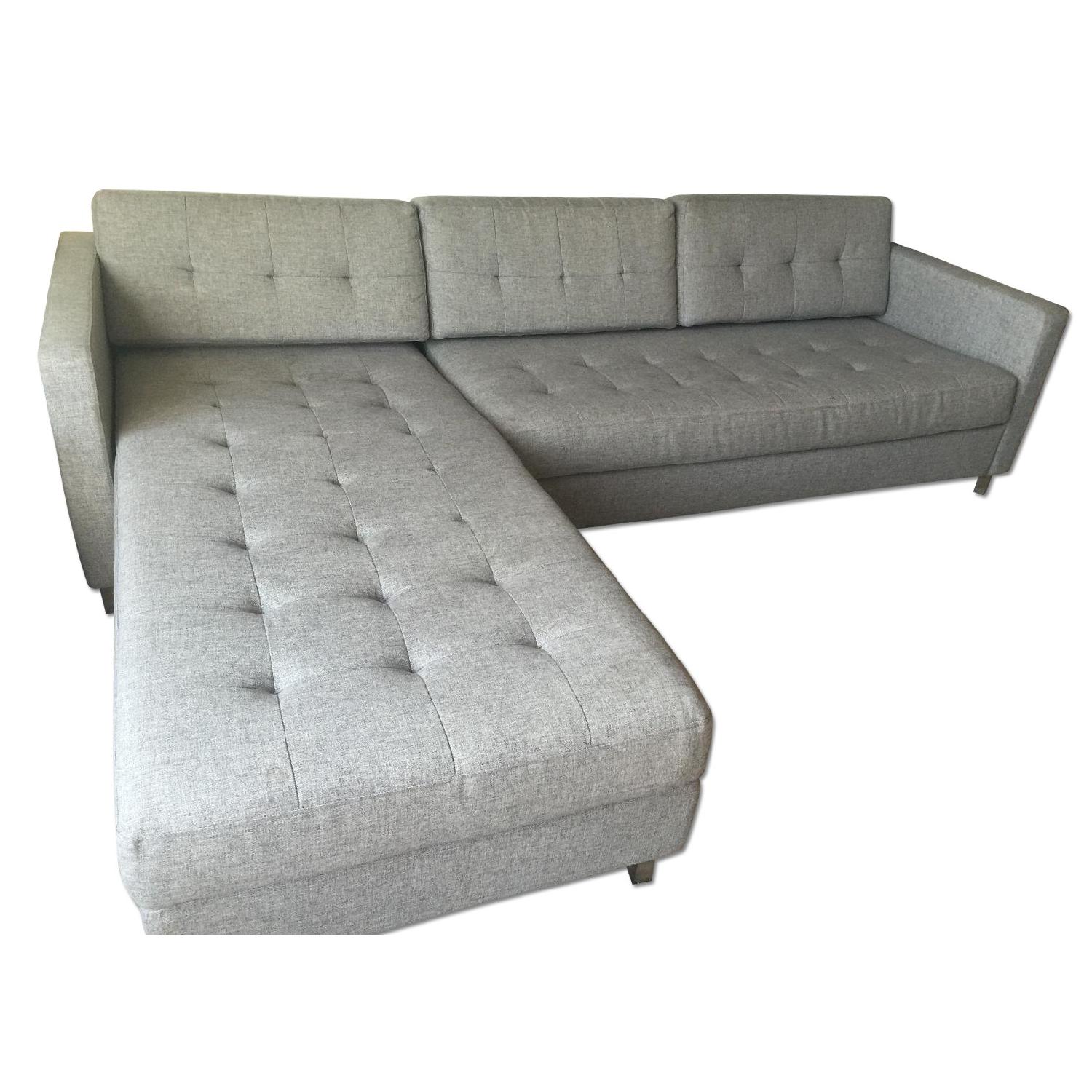 CB2 Ditto II Gray Tufted Sectional Sofa w/ Chaise