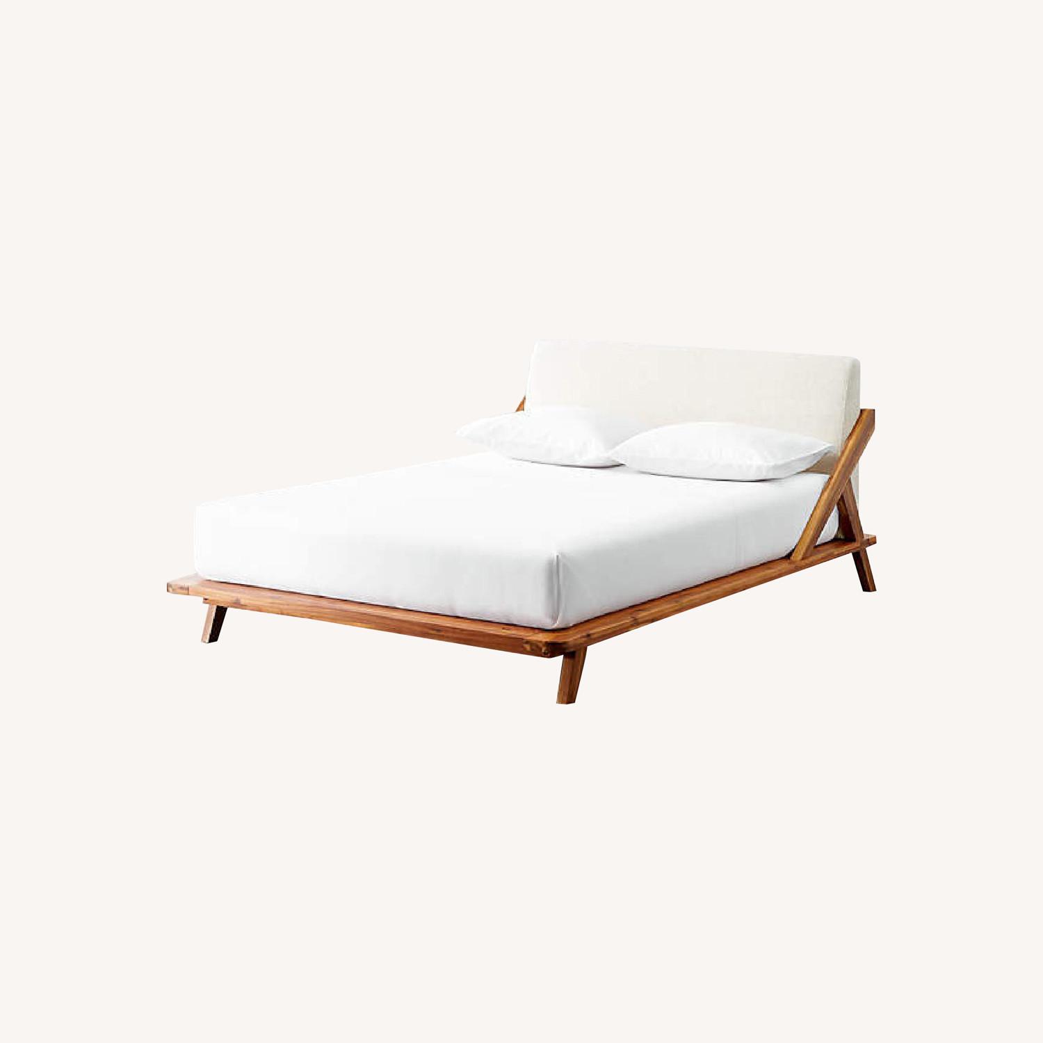 Seller's Notes:Moving Sale. Beautiful mid-century design CB2 Bed in excellent Condition (like new) (MSRP: $1099) - Queen size. Link to product page:https://www.cb2.com/drommen-acacia-wood-queen-bed/s213816