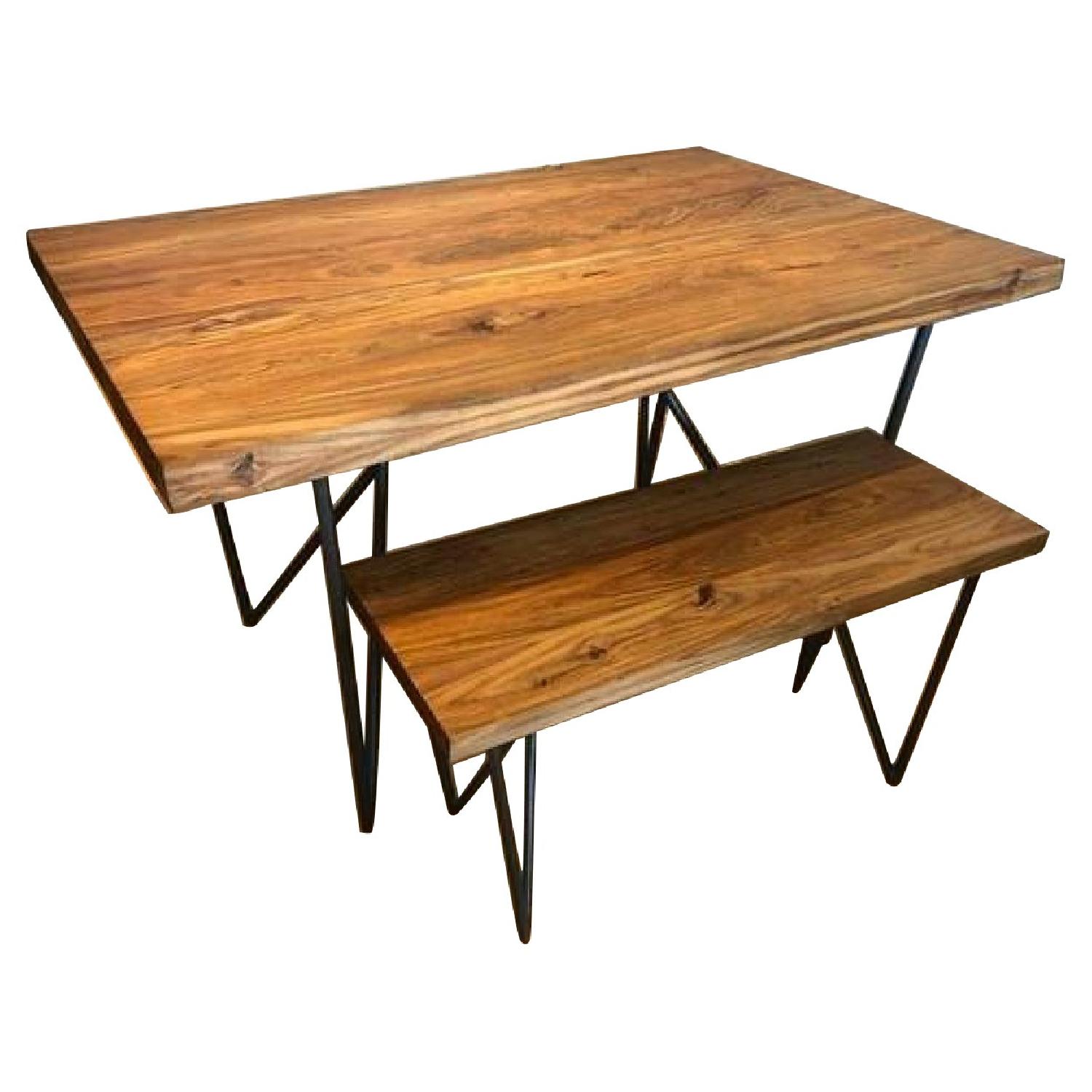 Seller's Notes:Selling table and bench Table top and leg is disassembled, all hardware is included Size 1) dylan 36"x53" dining table = $799 + TAX 2) dylan 36" bench = $259 + TAX ORIGINAL PRICE = $1058 + TAX Exclusive design by Jonas Wahlström Plantation-grown, sustainable solid shesham wood slab planks Water-based clear lacquer sealant Iron base powdercoated graphite with sandblasted finish Wood characteristics: mineral deposits, grain, knots and seasonal splitting may occur with changes in humidity and are inherent in product Recommend use of coasters to protect table from temperature extremes and spills Seats four comfortably, six if you must Protective floor pads recommended (not included) Made in India