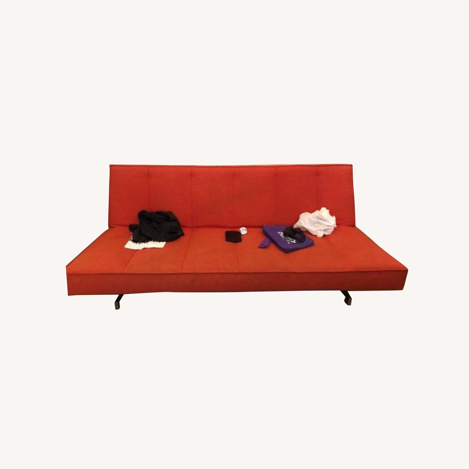 Seller's Notes:CB2 Flex futon sofa in excellent condition It folds out to a queen size bed. In orange color Width: 80" Depth: 37.5" Height: 33.5" See CB2 link for more details https://www.cb2.com/flex-gravel-sleeper-sofa/f4680 Price $350 Please email me if interested. Thank you