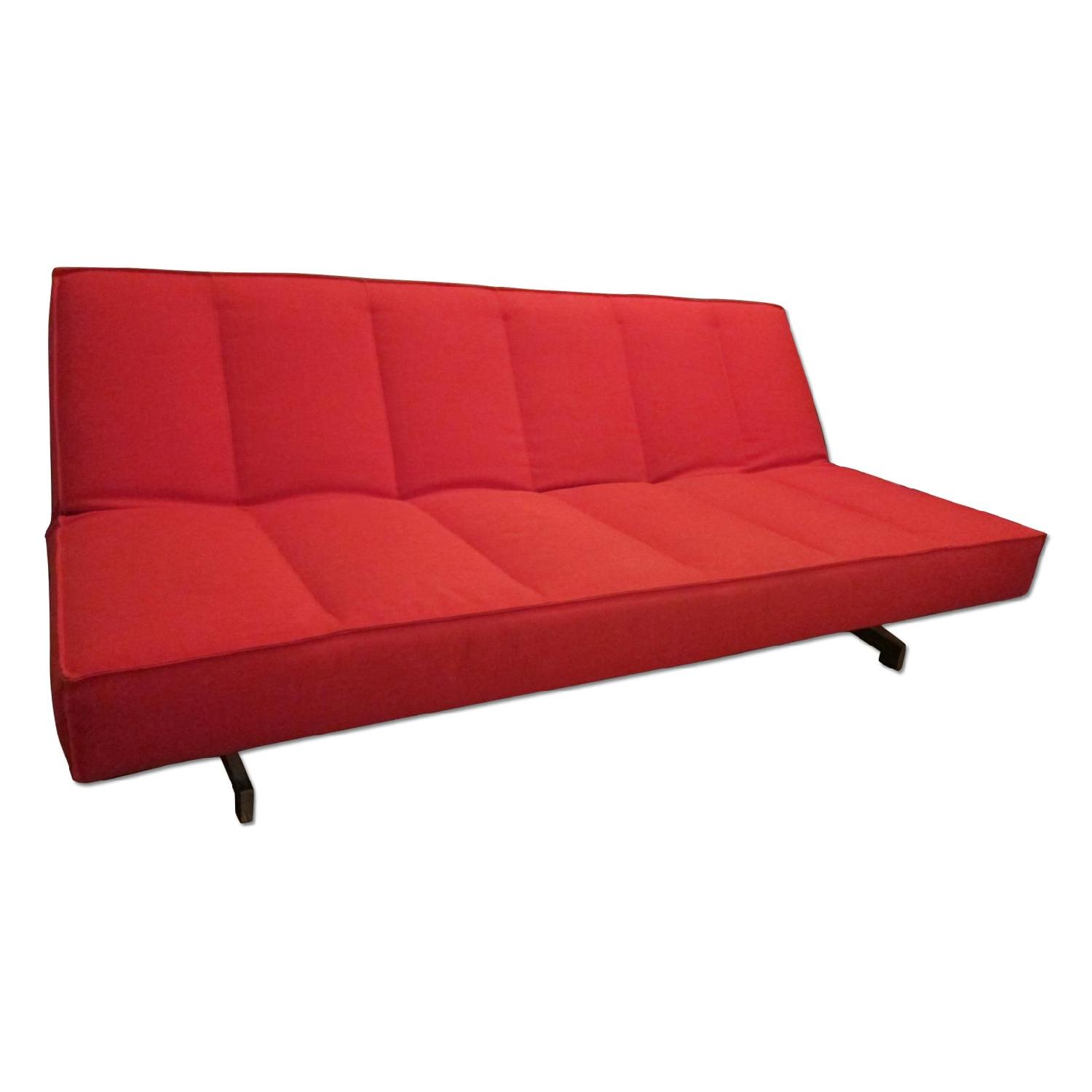 Seller's Notes:This versatile CB2 orange sofa is in excellent condition and was purchased in 2012. It comes from a smoke-free home and has never faced direct sunlight. There are a few very minor blemishes that are barely noticeable, and cushion is firm. The sofa has never been moved since it was delivered - it's been at the same spot, in the same home, where CB2 deliverymen originally placed it. I'm sad to have to part with this sofa, but I need to let it go for space reasons.