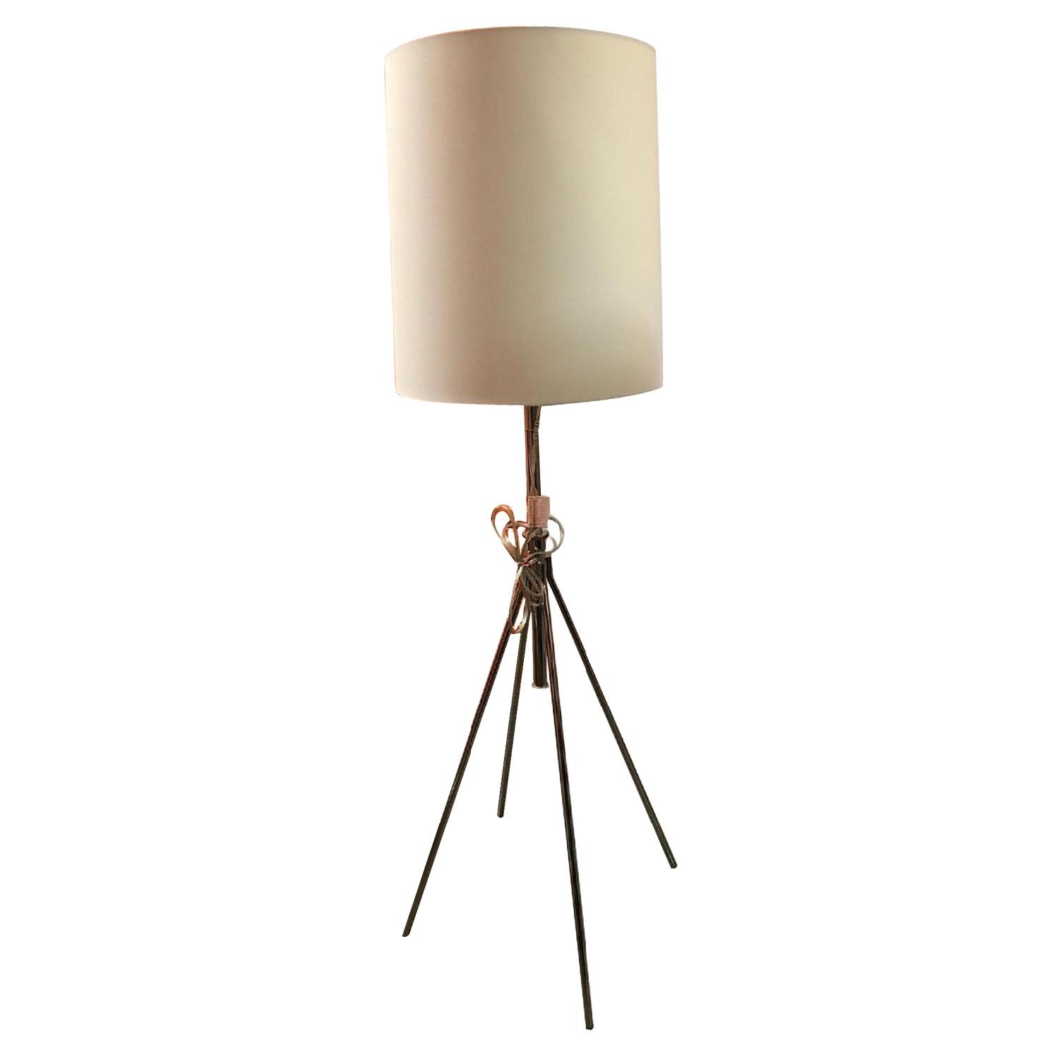 Seller's Notes:Tubular steel shaft and legs with brushed nickel finish Oversized white cotton shade On/off foot switch