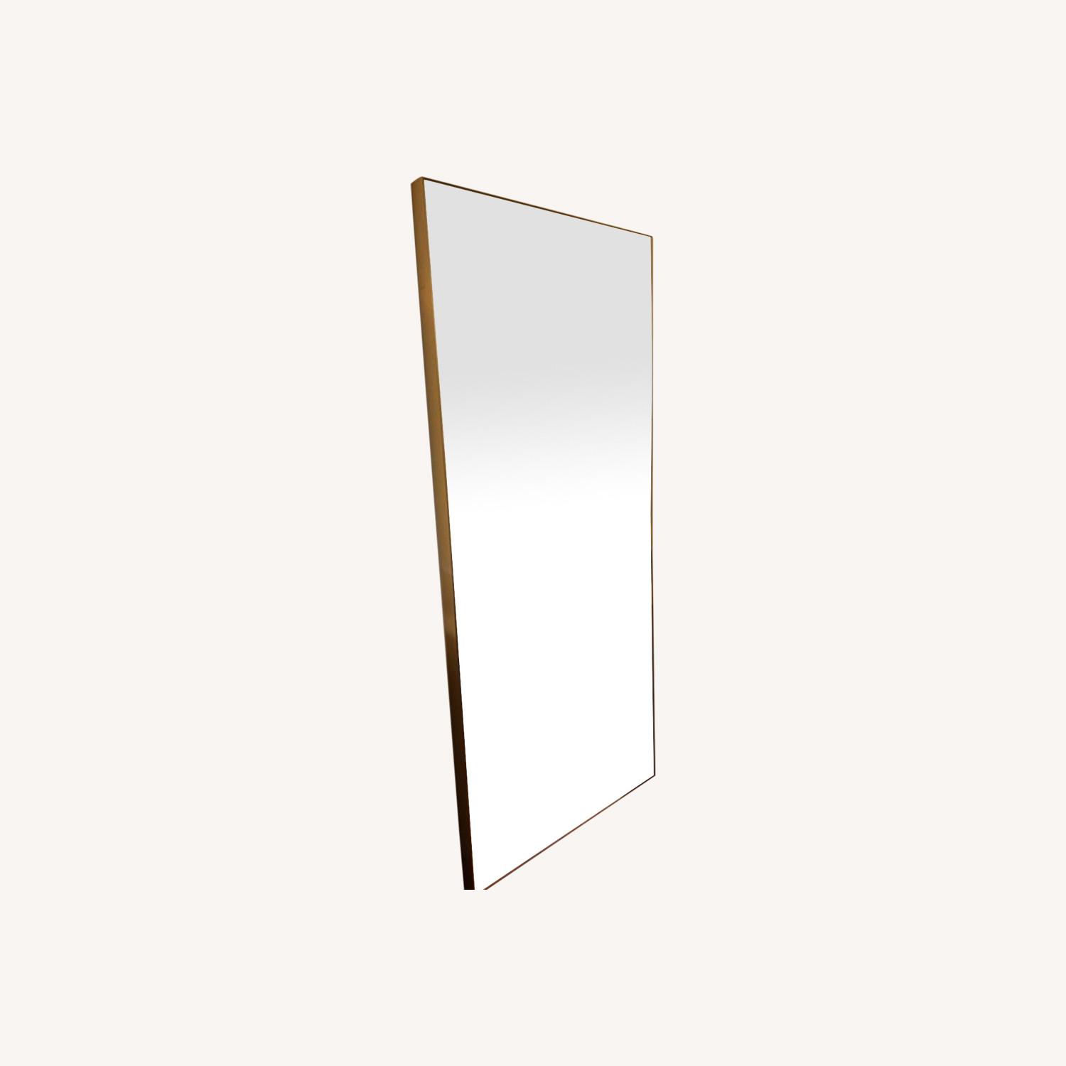Seller's Notes:Mirror image without bounds framed thin, trim and exact in pure extruded aluminum with a brass finish. Resists corrosion to work bath or kitchen, too. Infinity Brass Floor Mirror 32"x76" Suitable for bedroom, bathroom or kitchen Glass mirror with aluminum frame and brass finish Due to the finishing process, brass finish undertones and hue may vary slightly from piece to piece Do not mount on wall 57.2 lbs Wipe frame with soft cloth; clean mirror with mirror cleaner Made in Taiwan