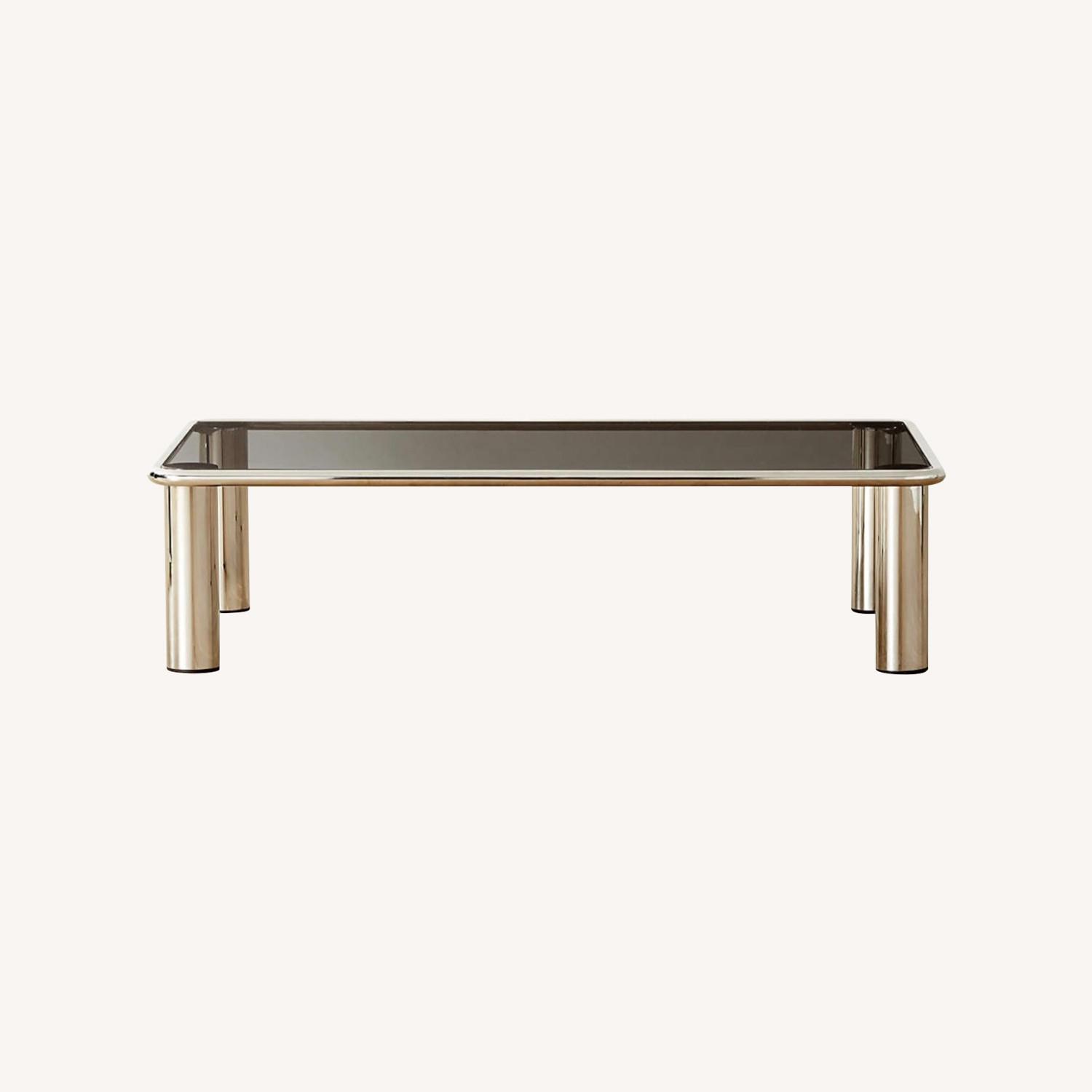 Created by groundbreaking Italian designer Gianfranco Frattini, this rectangular coffee table exemplifies the decade-defining aesthetic he introduced in the 1970s. Designed at the same time as his famous Sesann sofa, this polished stainless steel coffee table features a grey smoked glass top that plays up the sheen of its tubular legs. Newly reintroduced in collaboration with CB2, the top and bottom are made in Italy—just like the original. CB2 exclusive.