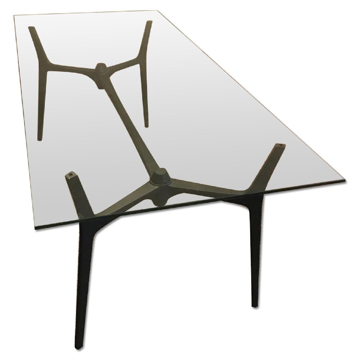 Seller's Notes:Modern glass dining table from CB2. Seats 6 with plenty of space, 8 certainly possible but a little more cozy! This table has mainly been used as a work station for many people with computers. There are several scratches as a result. I have tried to include some pictures but it’s difficult to capture. Still an excellent table - damage is not super obvious especially with table runner or placemats. Selling as it’s too big for my new space.