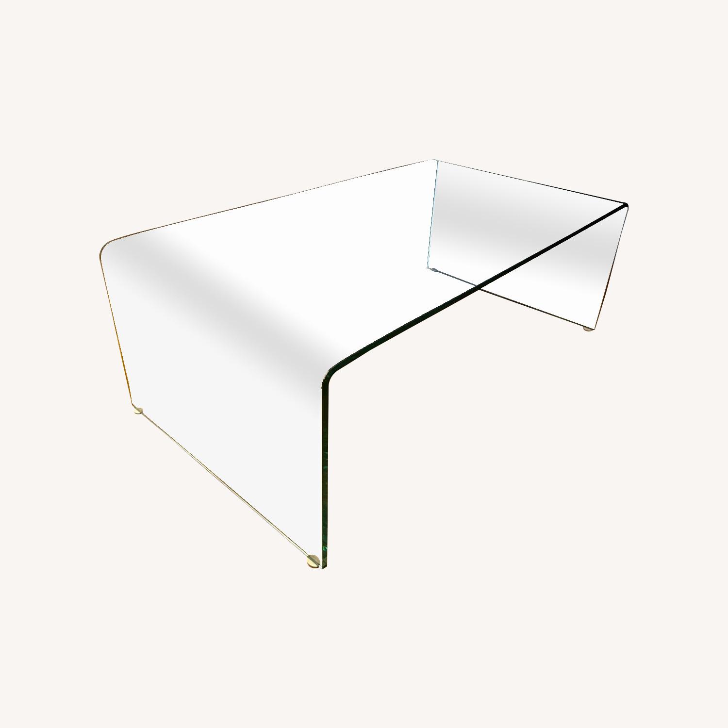 Seller's Notes:Transparent glass surface floats in the room without taking up permanent visual residency. Thick molded glass adds clean modern edge in one seamless turn