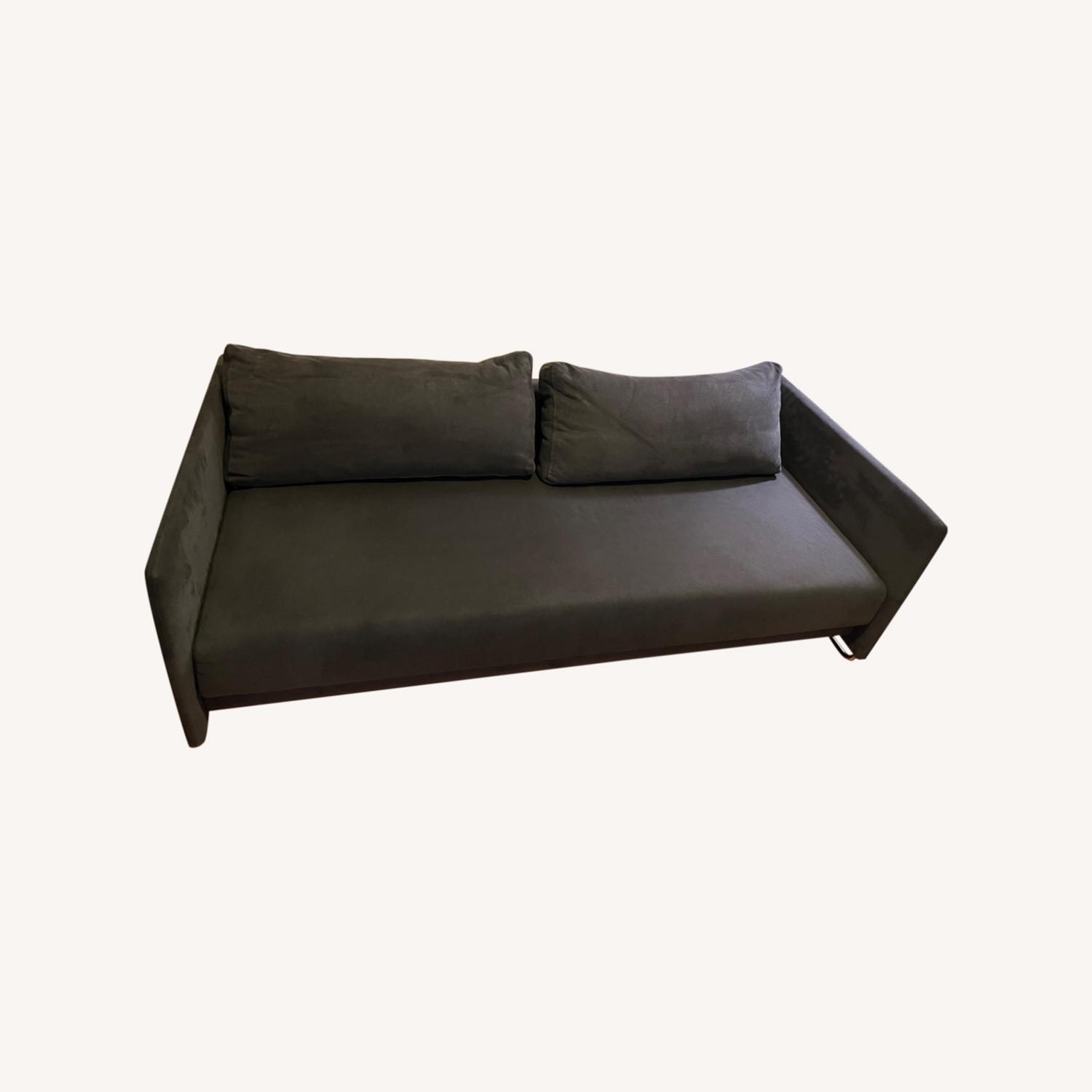 Seller's Notes:No longer sold in stores, this versatile CB2 sleeper sofa has a small footprint that converts easily into a full sized bed. It’s in pristine condition after being used mainly as a bed (a mattress or foam mattress topper has always been used with it and has kept the upholstery in like new condition). Comes with 2 large back pillows that have not been used.