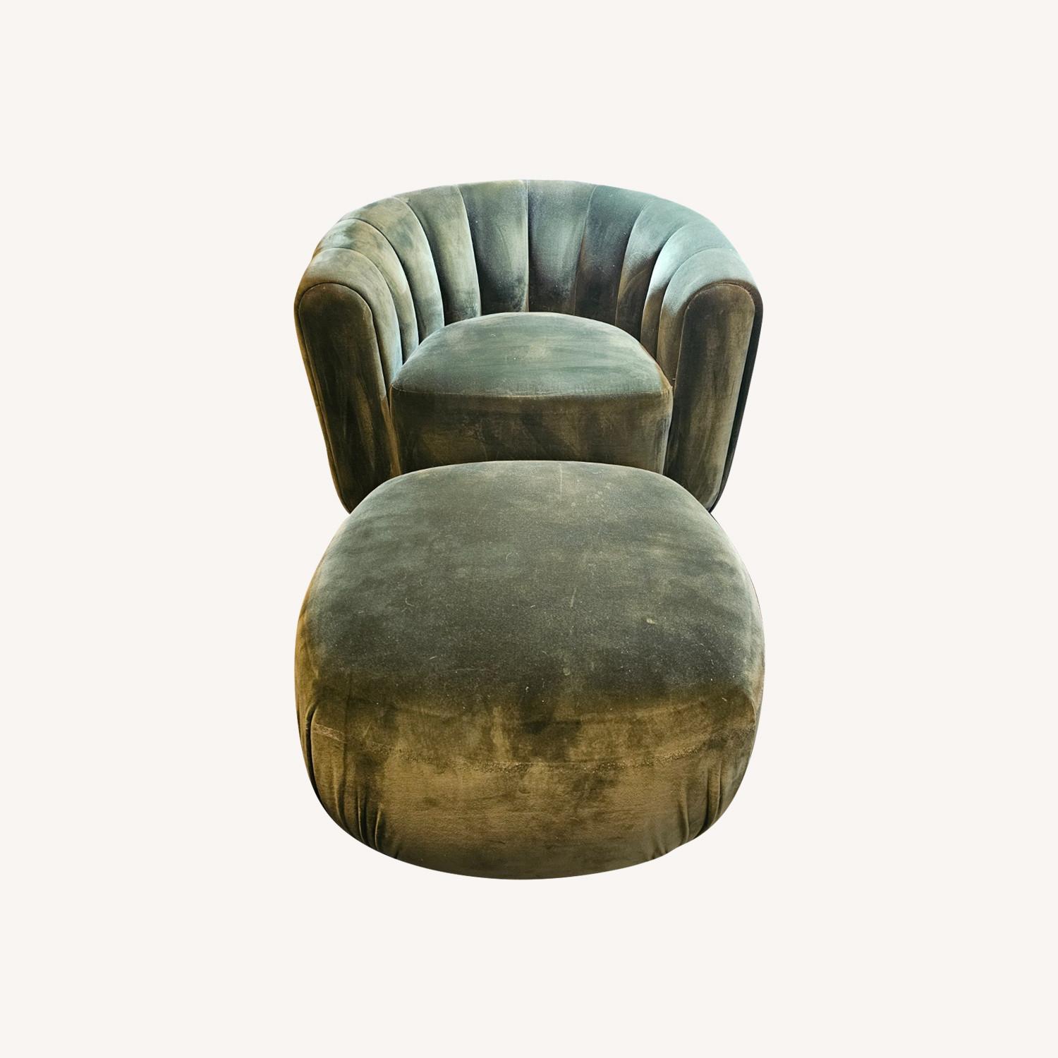 Seller's Notes:Soft, comfortable green velvet lounge chair + matching ottoman from CB2, less than 1 year old, in mint-like condition! Seller is moving/downsizing and some furniture has to go! (check 'more ads by this user')