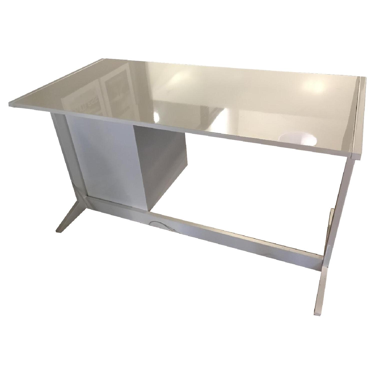 Seller's Notes:Modern and minimal CB2 desk. High gloss white. In great condition with minor scratches and nicks. Comes with matching filing cabinet that fits perfectly under the desk. The desk is no longer for sale at CB2. We paid $500 for it a few years ago. The filing cabinet alone sells for $179.