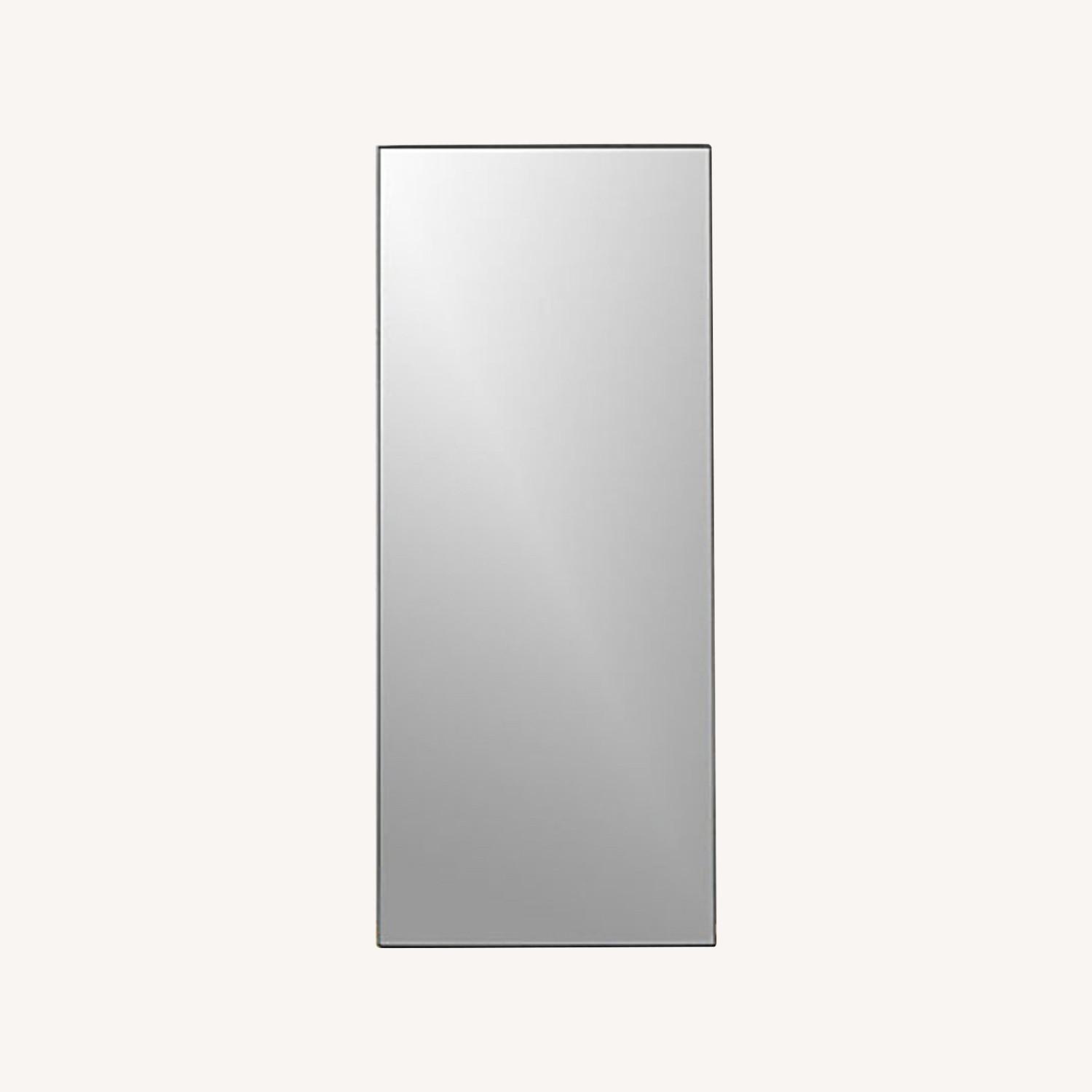 Seller's Notes:Still in box, never used CB2 Infinity Brass 32"x76" Floor Mirror Suitable for bedroom, bathroom or kitchen Glass mirror with aluminum frame and brass finish Back keyholes are for anti-tip hardware Anti tip hardware included
