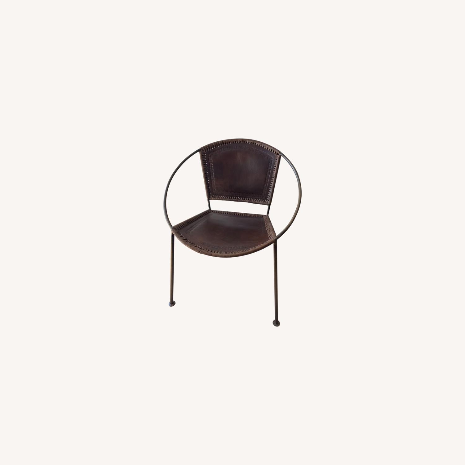 Seller's Notes:Brown leather chair with weaving detail and gold/rust frame. I've probably sat in this chair 5xs in the 4yrs I've had, truly used it as decor. Beautiful detailing, would love for it to go to a good home.