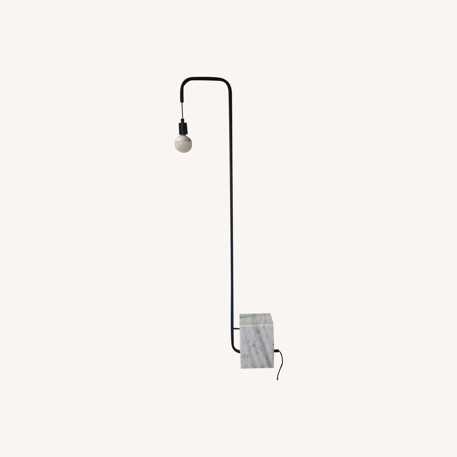 Seller's Notes:marble floor lamp is a CB2 exclusive. -Designed by Ceci Thompson -Solid marble base -Matte black pole and black cord -Includes one 23W CFL dimmable bulb; also accommodates one 150W incandescent bulb not included -Clean with soft, dry cloth -UL-listed learn more -Made in China