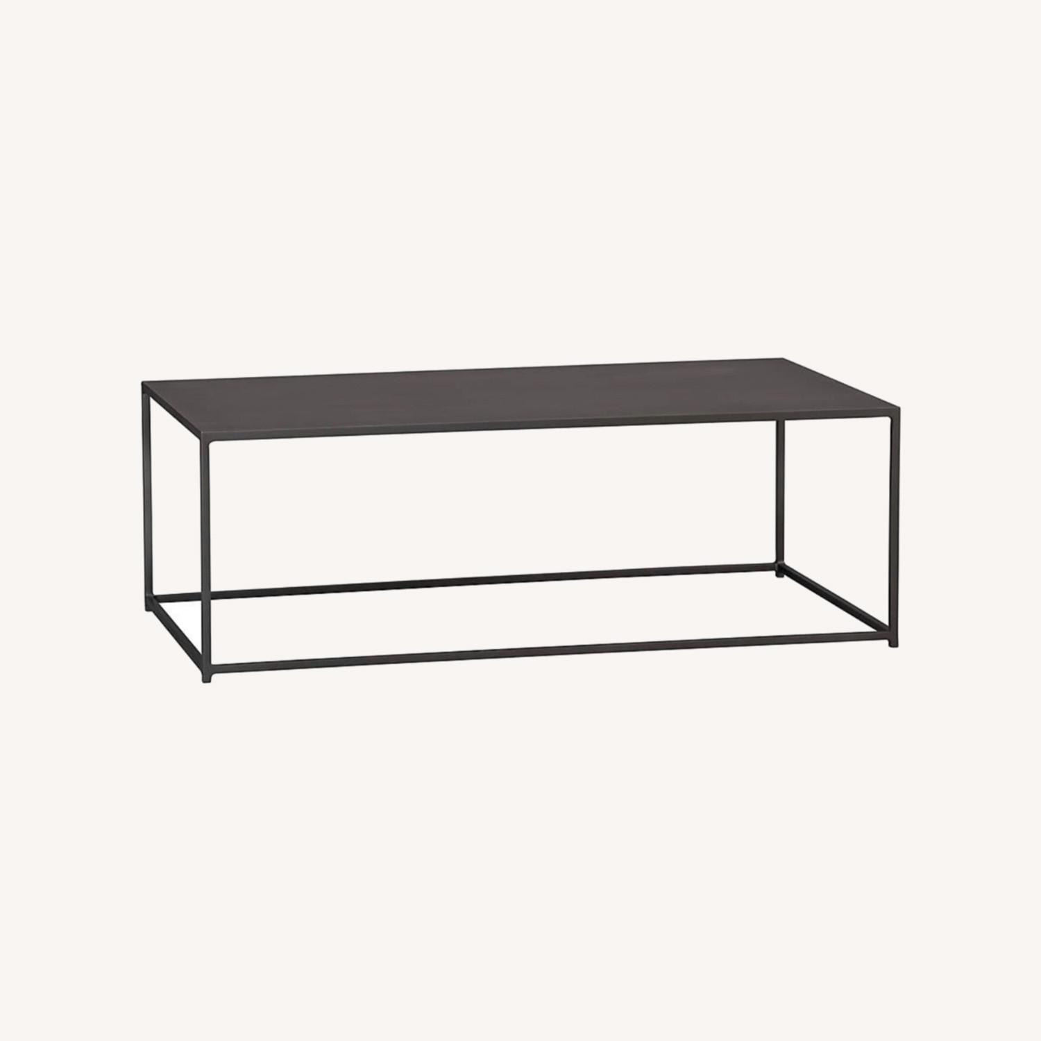 Seller's Notes:Modern, industrial very heavy duty iron coffee table with antiqued dark gray finish. Has some surface scratches as shown. Never othered me as I had the surface mostly covered in books. Needs to go! No space in new apt! Best offer!