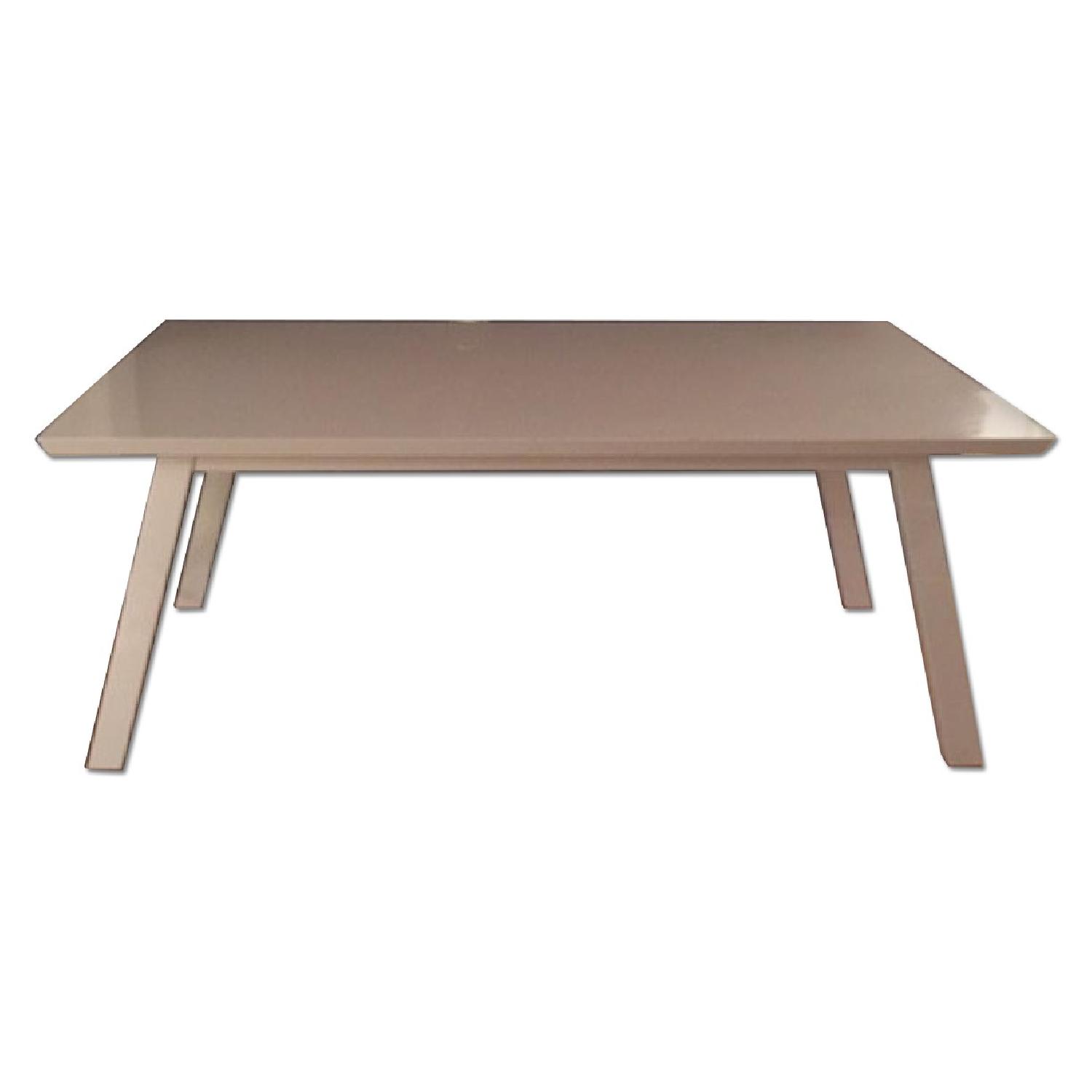 Seller's Notes:Modern White Dining Table Wood composite with smooth white lacquer finish Comfortably seats 6-8 people Very Durable, wipes clean Slight wear and tear (minimal scratches and nicks) but goes with the aesthetic Prior version of the new CB2 pocket white extension table
