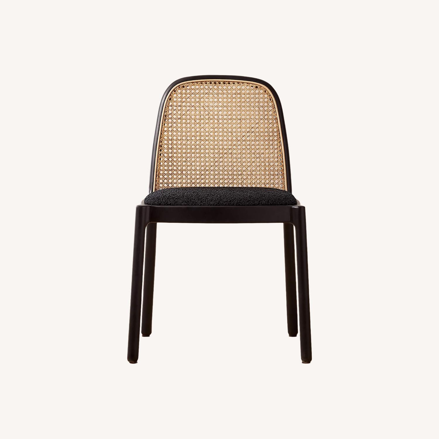 Seller's Notes:A modern take on the classic cane chair. Jannis Ellenberger pairs natural rattan with a clean black frame and plush black boucle seat. An easy way to bring high-end style to the dining or living room. CB2 exclusive.