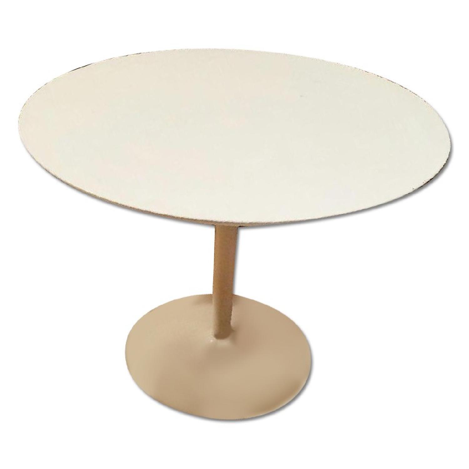 Seller's Notes:I caught the Table new from CB2. It now has stains and scratches. This would be a good Table for someone that is up for painting it or paying someone to paint it for them. I've seen these tulip style tables painted with chalk board pant as well as refinishing the top in white and the base in gold. There are many ways to do it and would be a fun project to customize it the way you like. Even doing some art on it and putting sealant would be dope.