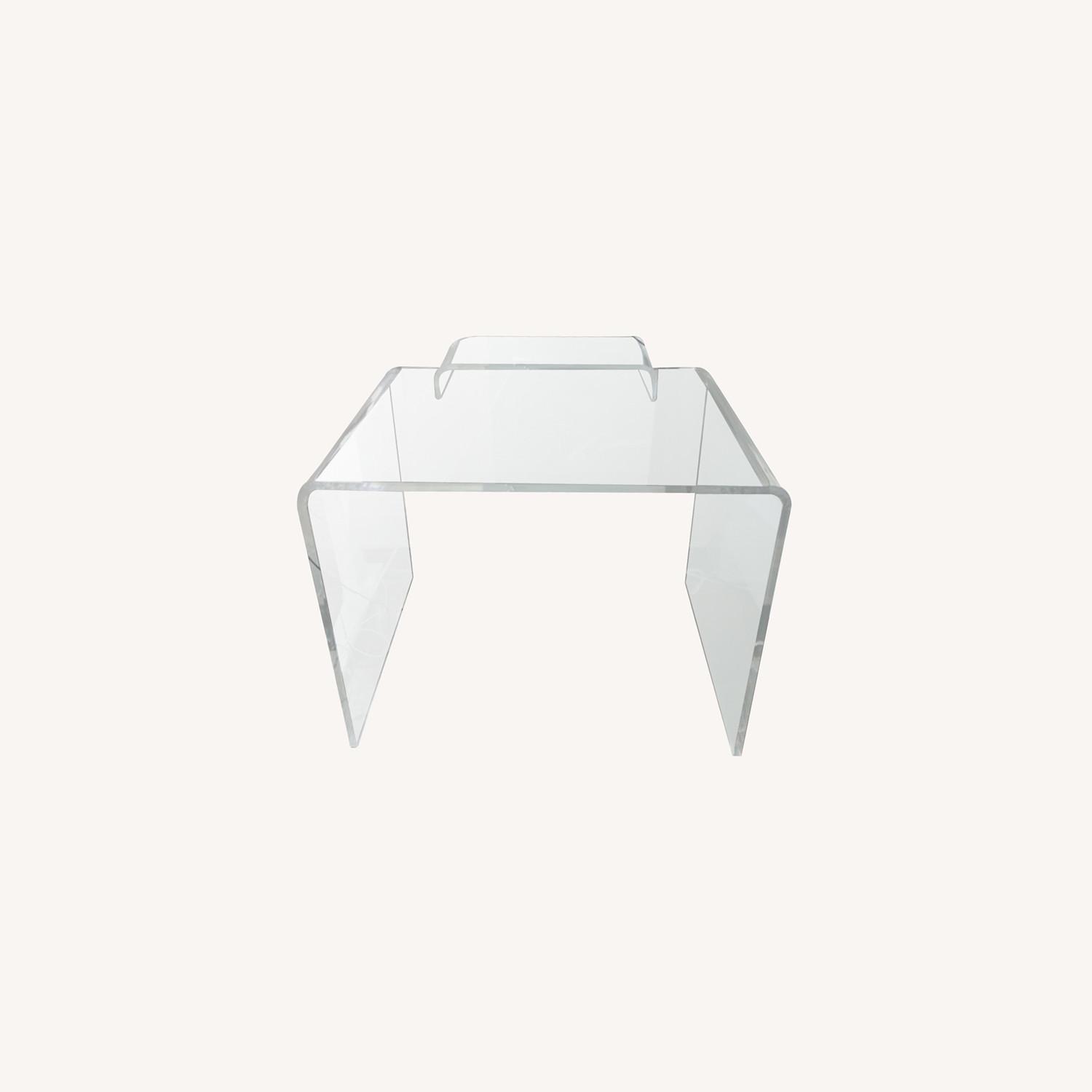 Seller's Notes:I'm selling my beautiful acrylic desk from CB2 because I'm now working from home full-time, and my company is covering the equipment for a full home office (including a standing desk). I'm sad to part with this piece as it is a recent purchase (less than one year ago), but I just don't have room in my apartment for a second desk. This item is perfect for NYC apartments because it's almost like it's not there. Yet it's functional. In addition to the desk, I'm throwing in the desktop stand (pictured), which matches beautifully, and it is wide enough to fit a full-sized Apple keyboard.