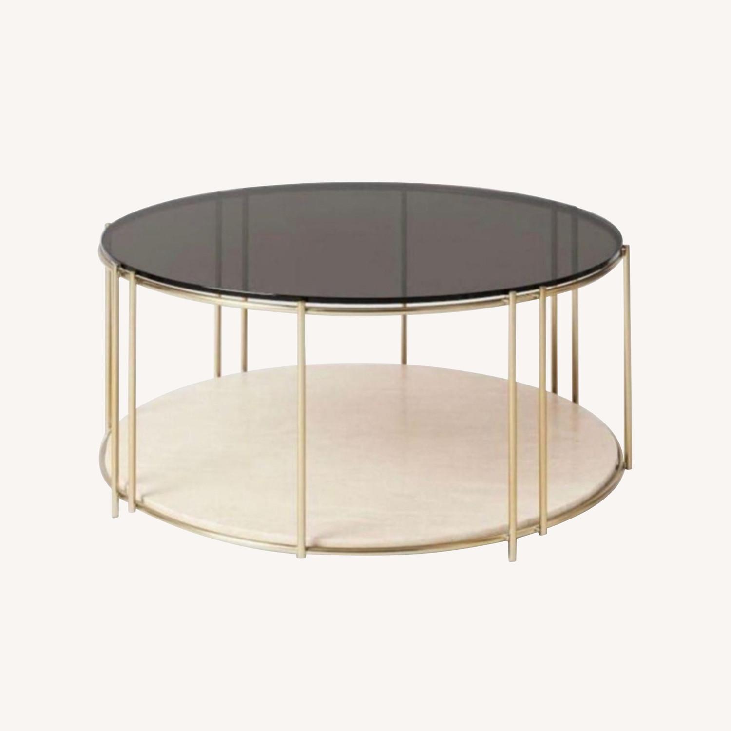 CB2 Round Coffee Table - Glass and Travertine