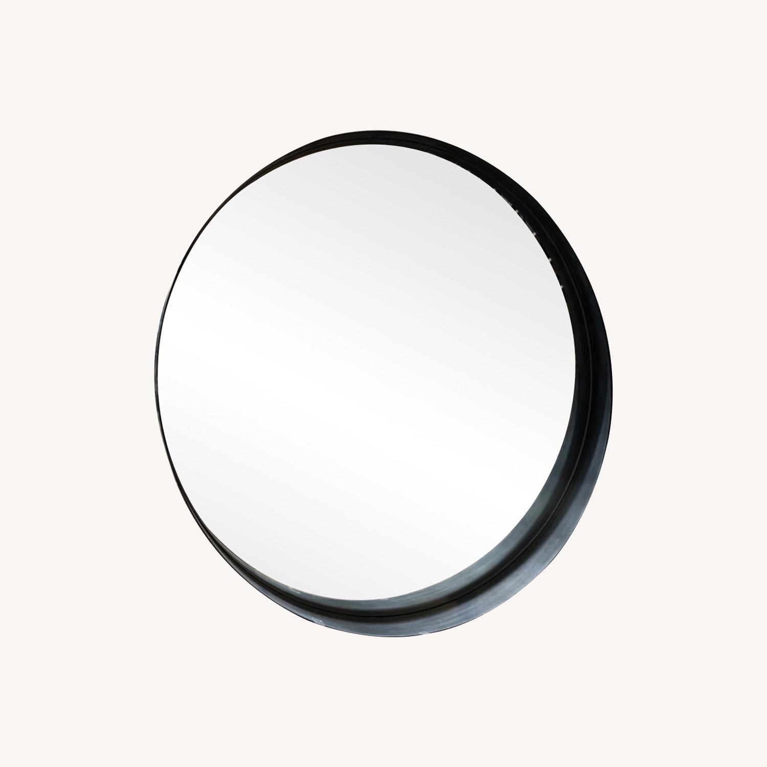 Seller's Notes:This brushed black wall mirror is 32” in diameter and made of metal. Glass is in perfect condition and no issues with mirror at all - just don’t have space in our apartment. Can hang on hooks, screws or nails. RL