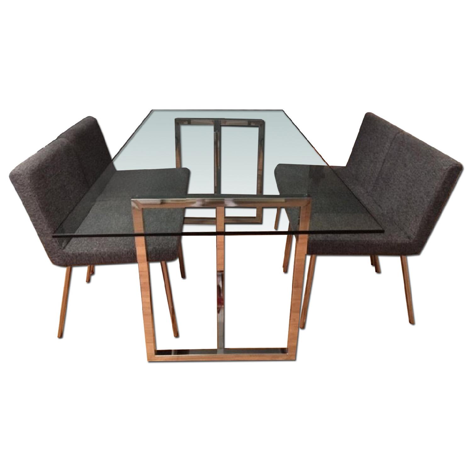 Seller's Notes:Dining table with 4pcs of chairs (CB2 Brand) in good condition. It was for only 2 people family so 2 of chairs rarely used. I paid around $200 per each chair. Minor scratch on the glass but it is not noticeable. Chrome base is very clean.