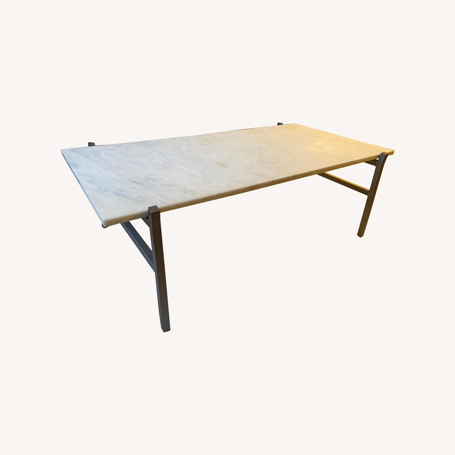 Seller's Notes:Solid marble coffee table with silver iron legs.