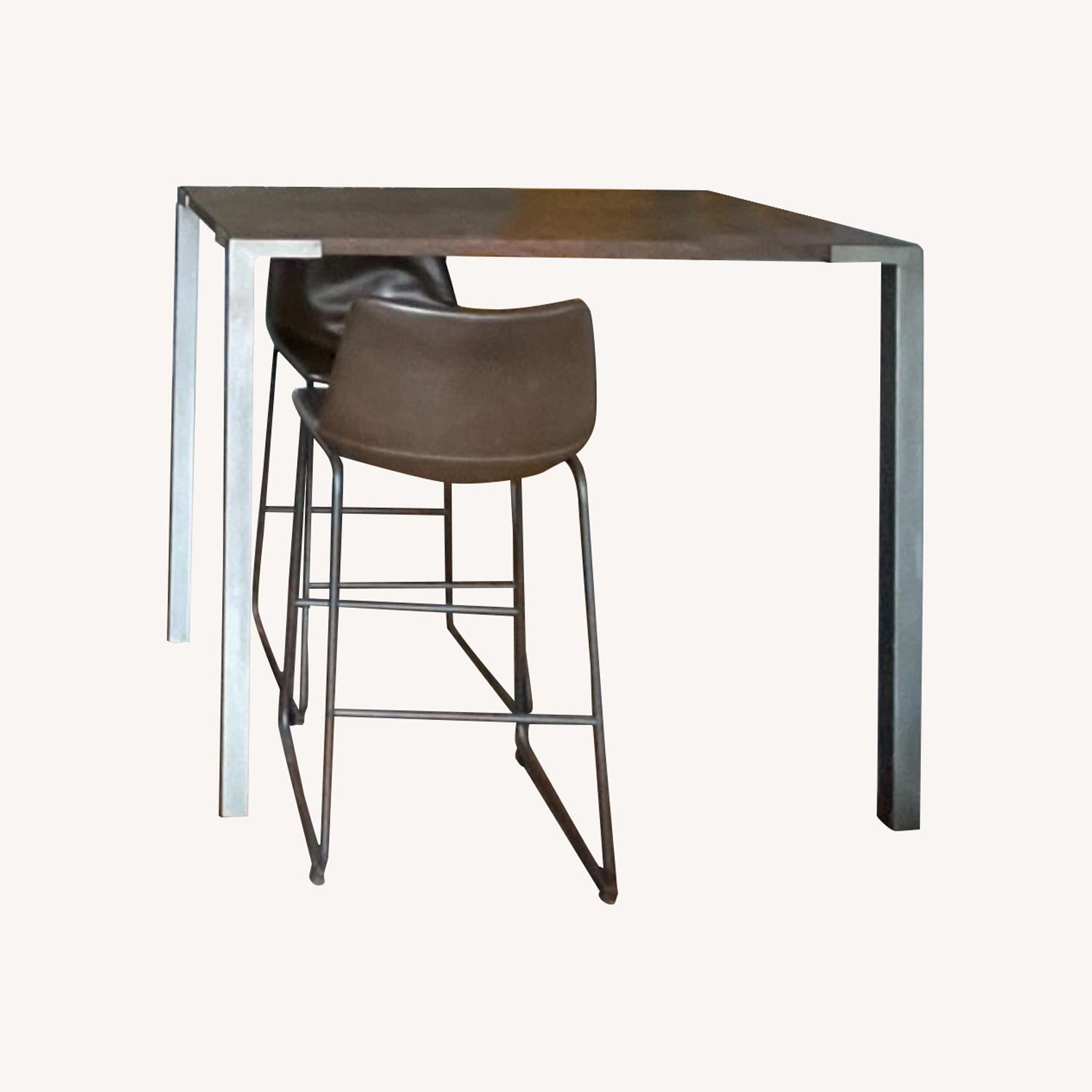 Seller's Notes:CB2 Stilt High Dining Table (42 inches tall) with 2 matching leather chairs. Sadly don't fit our new place. The wood is amazing quality and does not stain or get water marks. No longer sold at CB2.