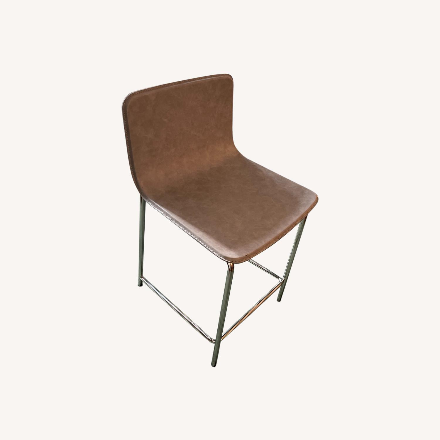 Seller's Notes:Selling as a set. Doorman building pick up. Framed in luxe details and unexpected curves, stool sits pretty from all angles. Designed by Jannis Ellenberger with cushioned grey leather and satin nickel-plated steel, seat pulls up high-end design at a minimal price. Learn about Jannis Ellenberger on our blog. CB2 exclusive. Strut Counter Stool Grey. 17.5"Wx19"Dx32.5"H Designed by Jannis Ellenberger Steel frame with satin nickel-plated finish Bonded leather Clean with a soft, damp cloth Made in Taiwan
