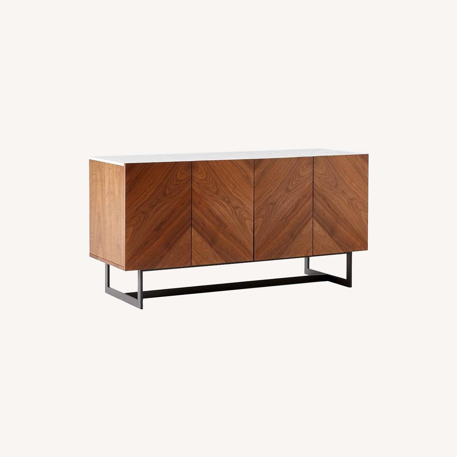 Seller's Notes:This beautiful credenza has been in our extra bedroom for the past year or so; exclusively used for storage. I took it off the black pedestal in order to give it a lower profile, but I still have the pedestal and hardware. They are included in the sale.