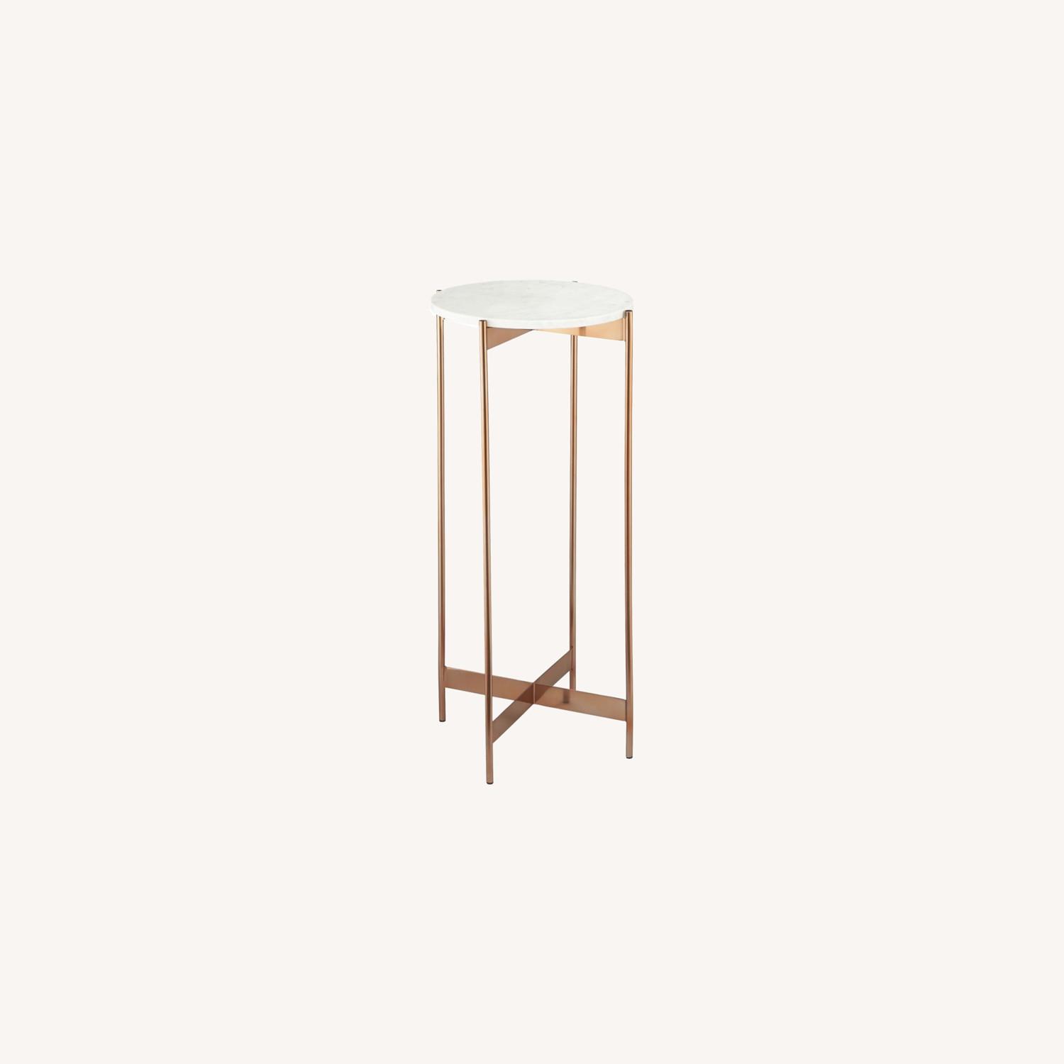 CB2 Tall White Marble and Rose Gold Pedestal Table