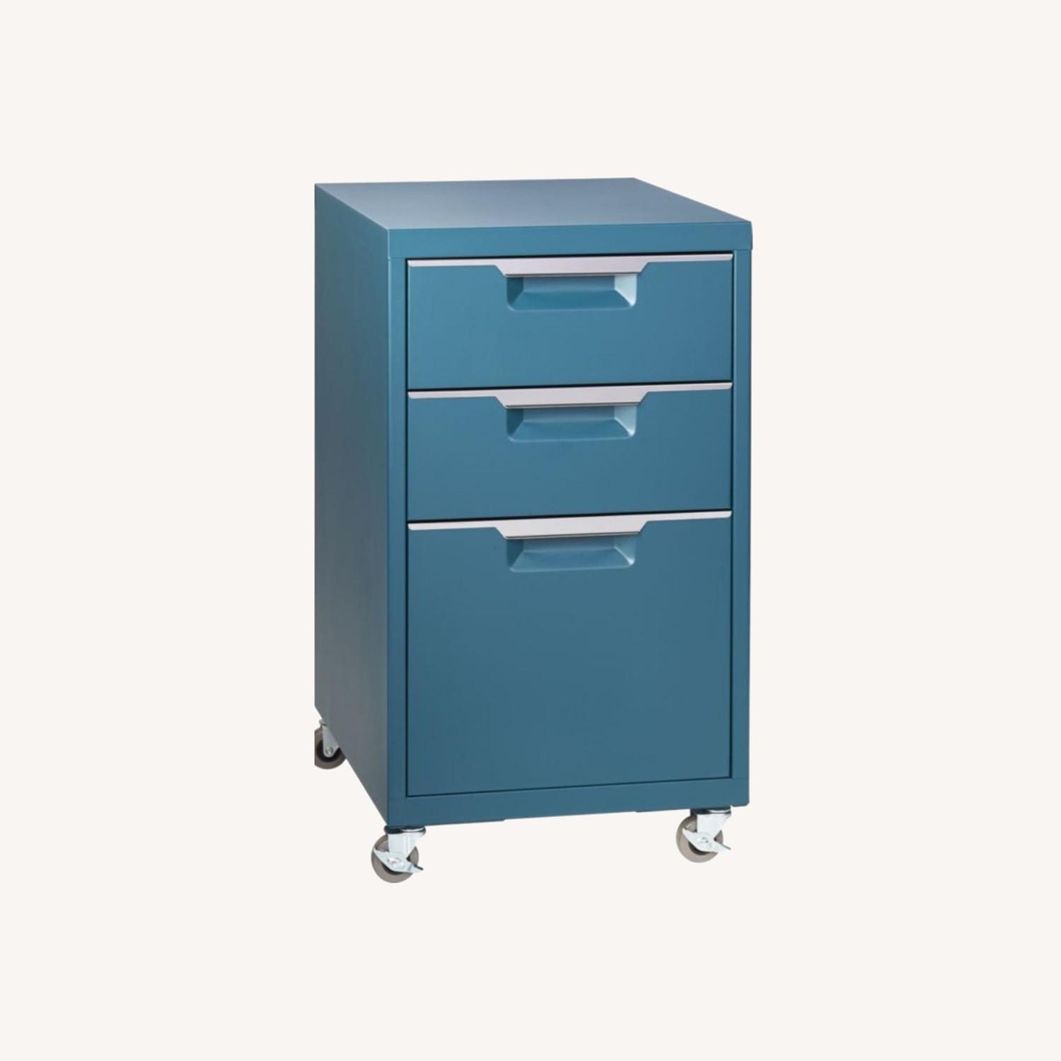 Seller's Notes:Stylish and functional, this teal file cabinet from CB2 brings a bold pop of color and practical storage to your space.