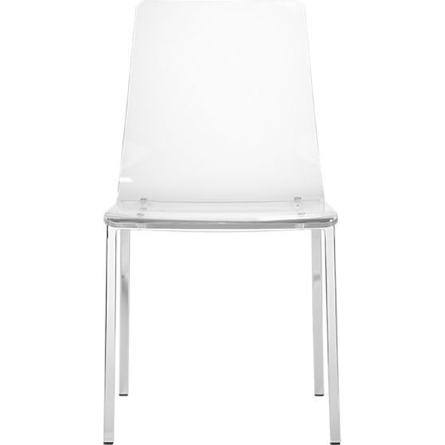 Seller's Notes:poof. A chair out of thin air. No fabric, no leather, just one clean swoop of clear, thick acrylic exposing architectural chrome plated square steel frame. Formfitting curves in all the right places. Clearly works with any table. Invisible look opens up small rooms. http://www.cb2.com/vapor-acrylic-chair/s417893