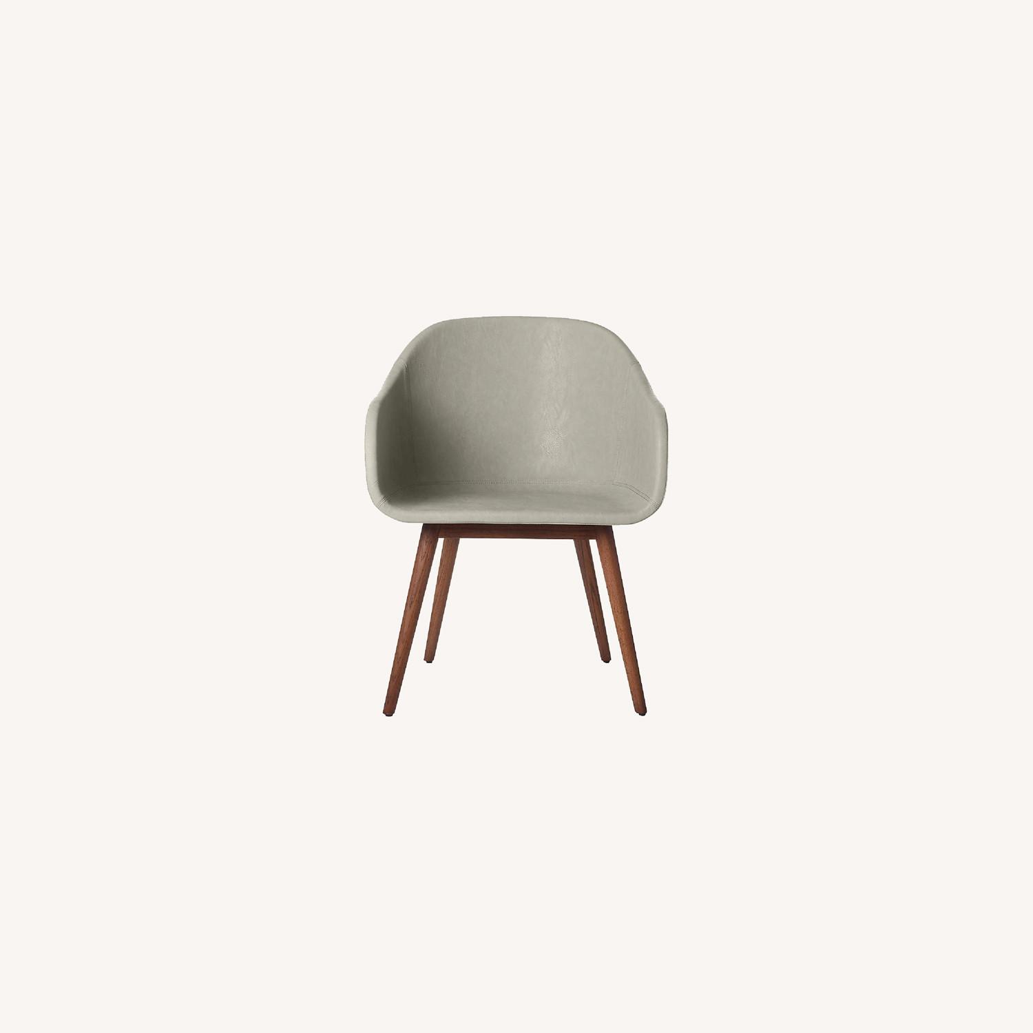 Seller's Notes:Familiarity reigns, favorites are reimagined with a splash of LA cool and a fashion edge," says Fred Segal of their eclectic approach to furniture design. Chic faux leather in grey covers a molded midcentury-inspired seat supported by sleek angled oak legs. Office chair is elegant and minimal at the same time. Venice Studio Grey Task/Office Chair. 25.5"Wx23"Dx33"H Designed by Fred Segal Faux grey leather seat Solid oak legs Genuine CB2.