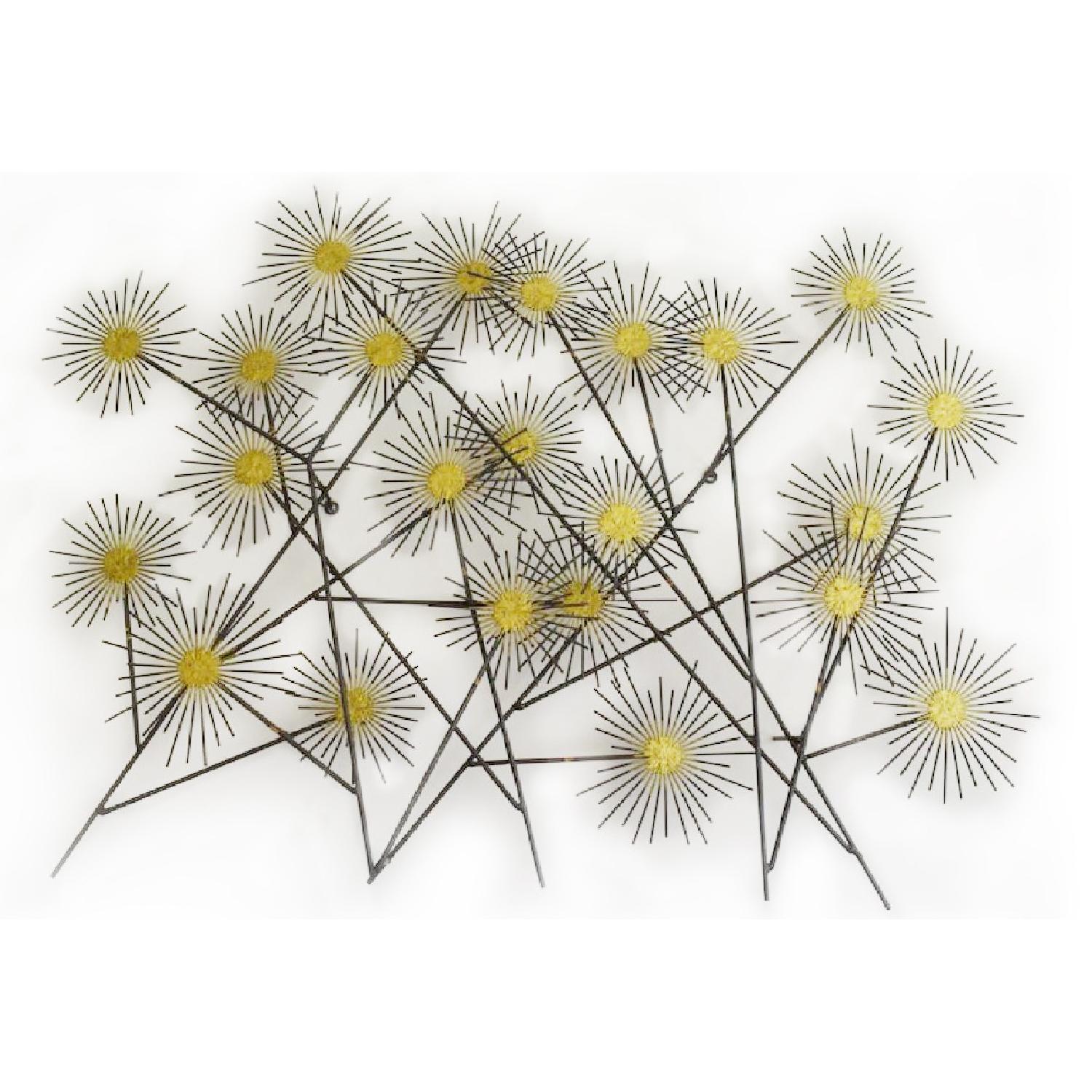 Seller's Notes:Selling this beautiful brand new looking wallflower wall hanging. Handcrafted. Steel with hand-dripped brass. Raw finish with clear protective powder-coat. Includes mounting hardware. It's in excellent condition! Looks great in the living room and/or bedroom. Overall Dimensions: Width: 39" Depth: 4" Height: 29" Originally paid $199
