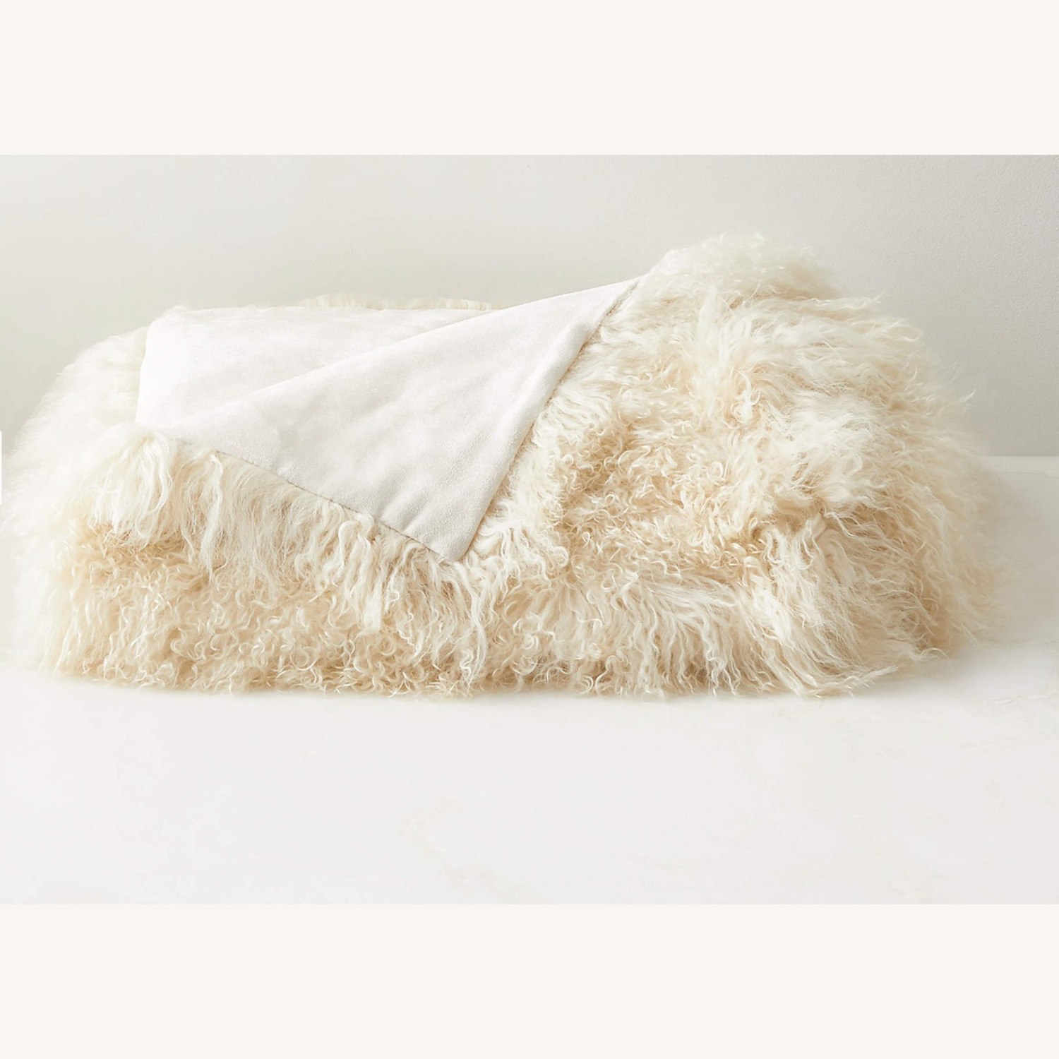 CB2 Warm White Mongolian Sheepskin Fur Throw Blanket