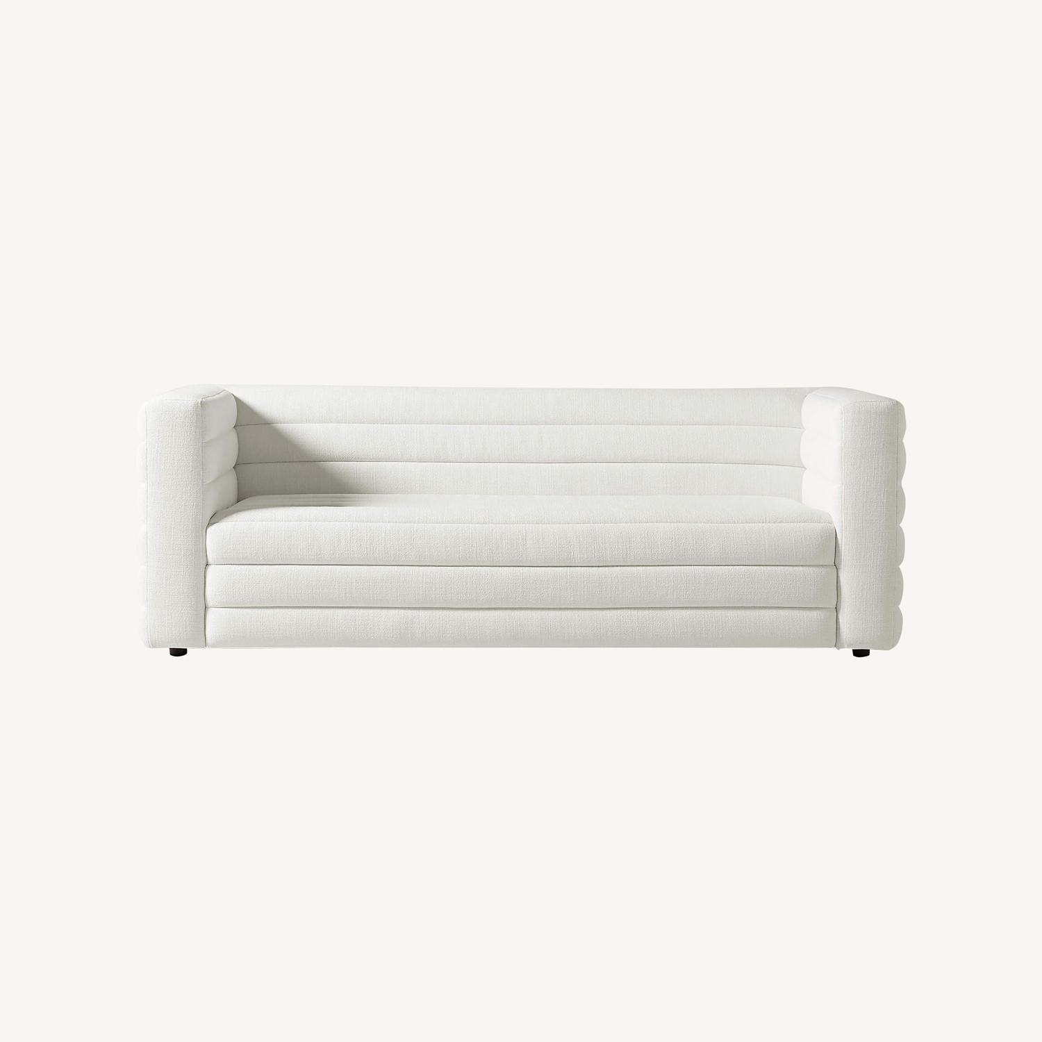 CB2 White Boucle Strato Sofa