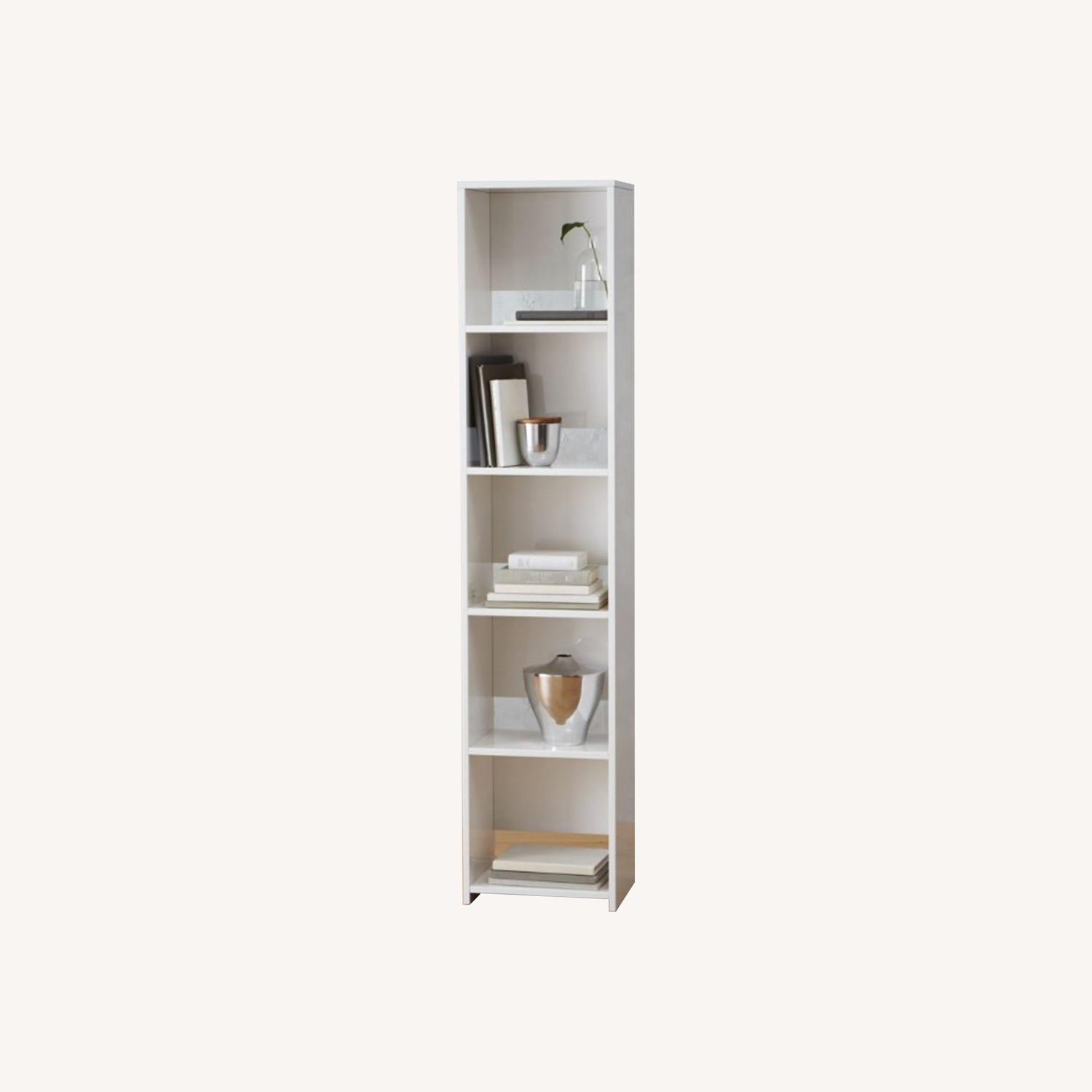 Seller's Notes:Perfect condition. White lacquer. Sturdy and well balanced. Perfect for a bedroom bookshelf. Fully assembled and ready to take. From CB2: Possibly the most versatile bookcase ever. Clean, bright white ladders up five shelves in engineered wood with a high gloss lacquer finish. Partially open back manages cords for an always clean view. Simple yet sophisticated, displays solo or lined up in the living room or office for stylish storage/feature wall. Clean with a soft, dry cloth. Made in Taiwan