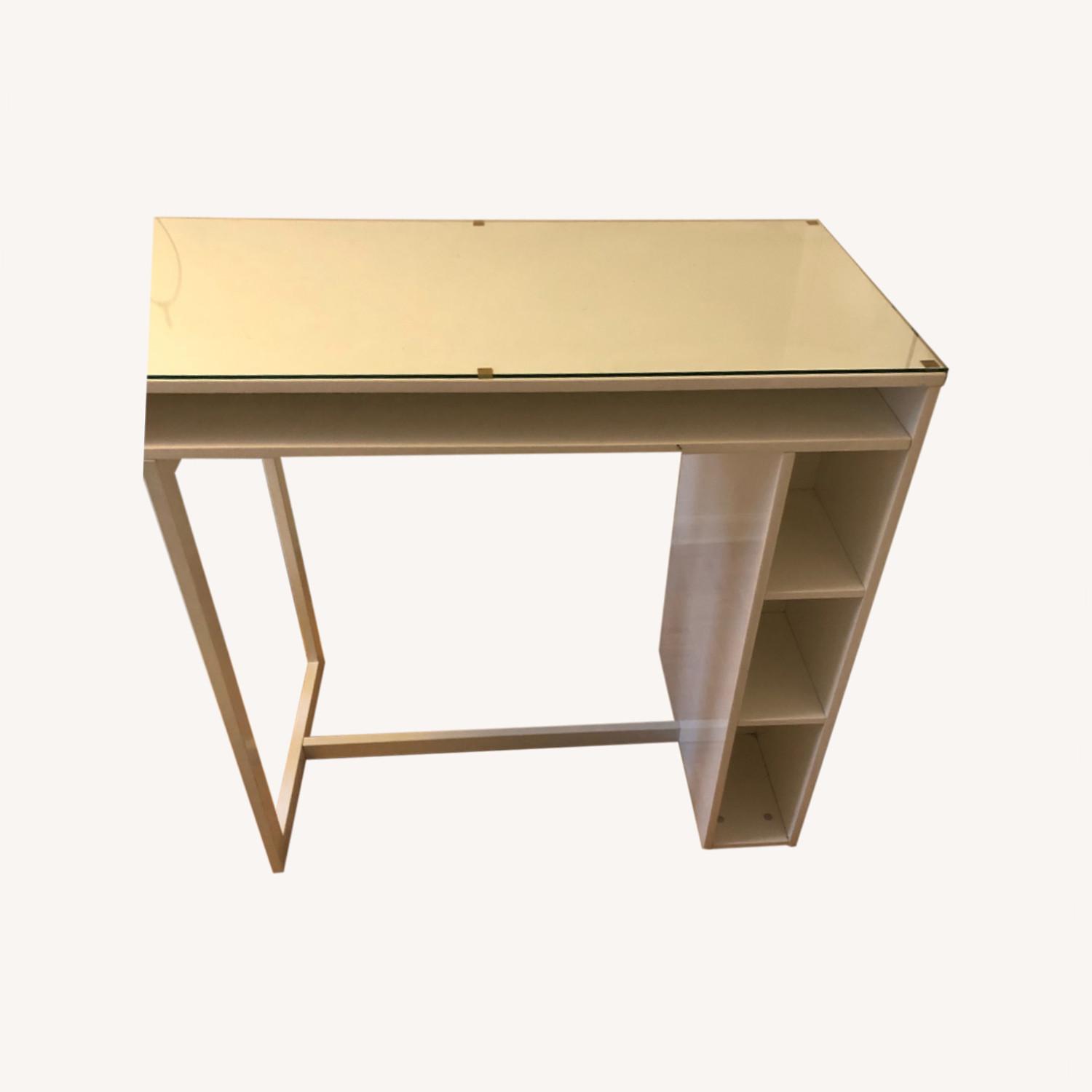 Seller's Notes:This piece was purchased as a work/art studio space but unfortunately did not get as much use as expected. Great news for the potential buyer as it is in near mint condition! We have held on to this piece because we love it so much but with baby #2 on the way we can no longer accommodate it :( We also had a custom glass top made (made by the famous ABC Glass in the East Village for those who were familiar/interested). The glass top has preserved the integrity of the white lacquer - it is scratch free! The table is multi functional, sleek, modern and in near mint condition - all in all a wonderful piece. We have taken great care of it and hope to find someone who continues to do so.