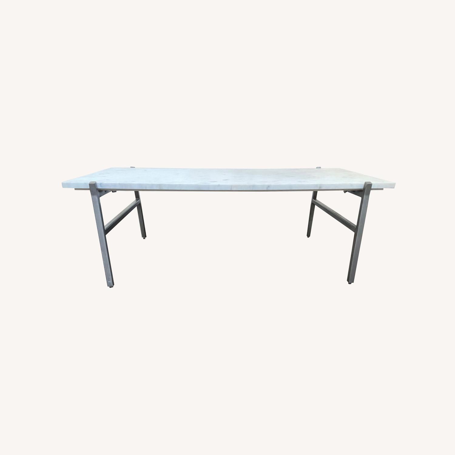 CB2 White Marble Coffee Table with Brushed Silver Base
