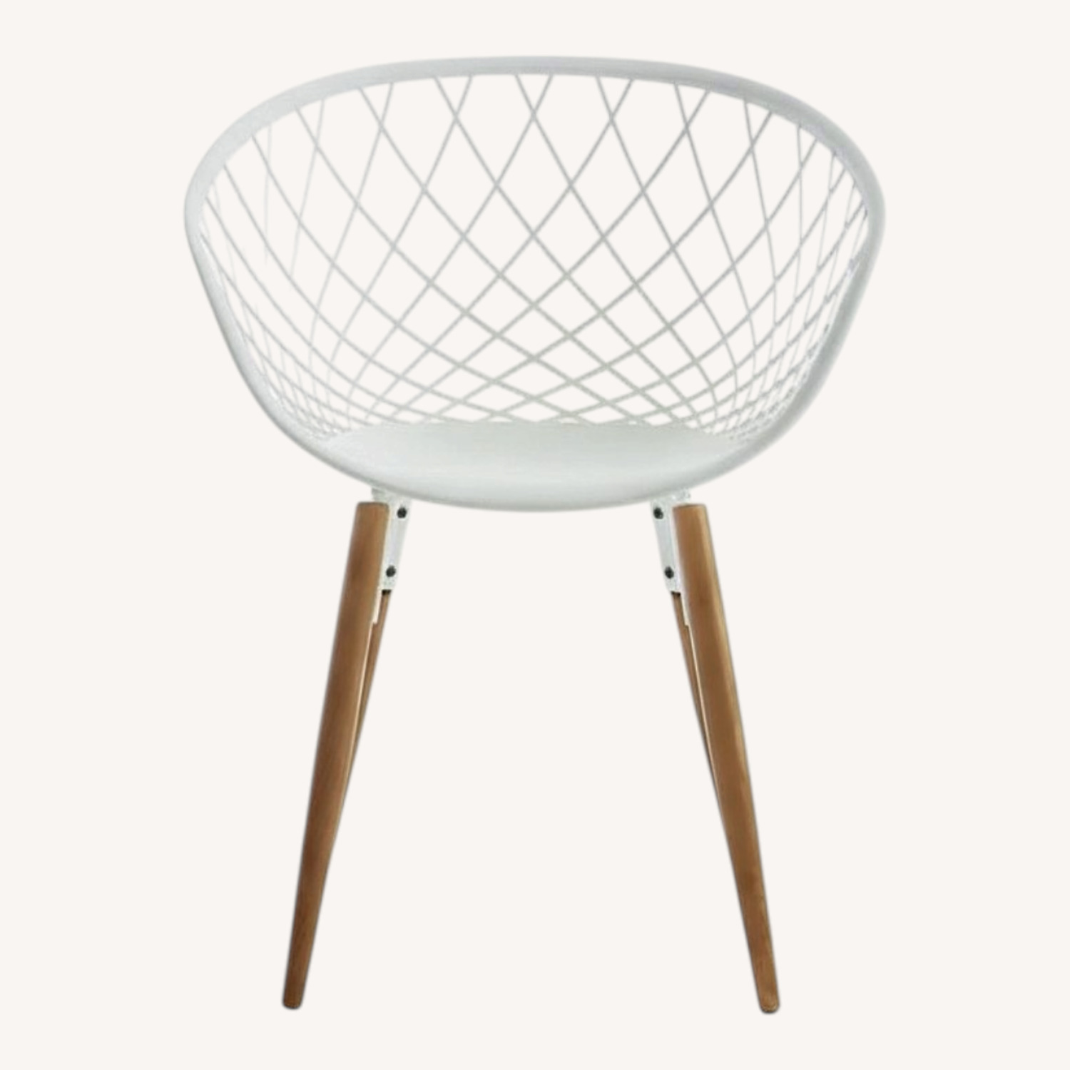 sculptural seat. High-tech construction meets classic modern design. Made in Italy, sleek molded plastic sculpts a woven crosshatch pattern on tapered solid ash wood legs. Light/medium brown stain pairs perfectly with the clean white frame for an updated Scandi feel. Super roomy seat pulls up perfectly as head dining chair or desk chair. Sits perfectly as a side chair, too.